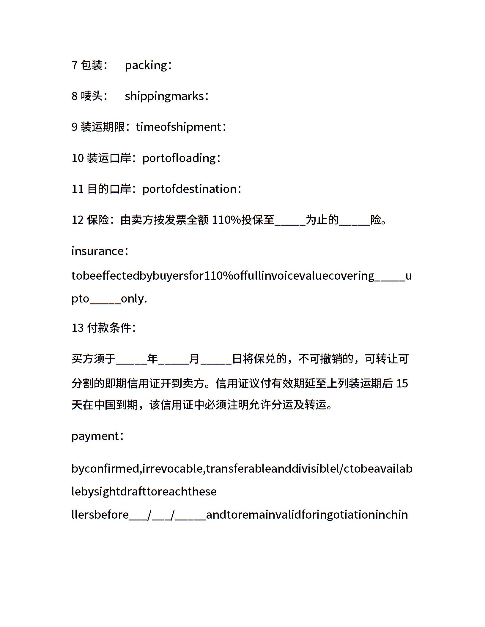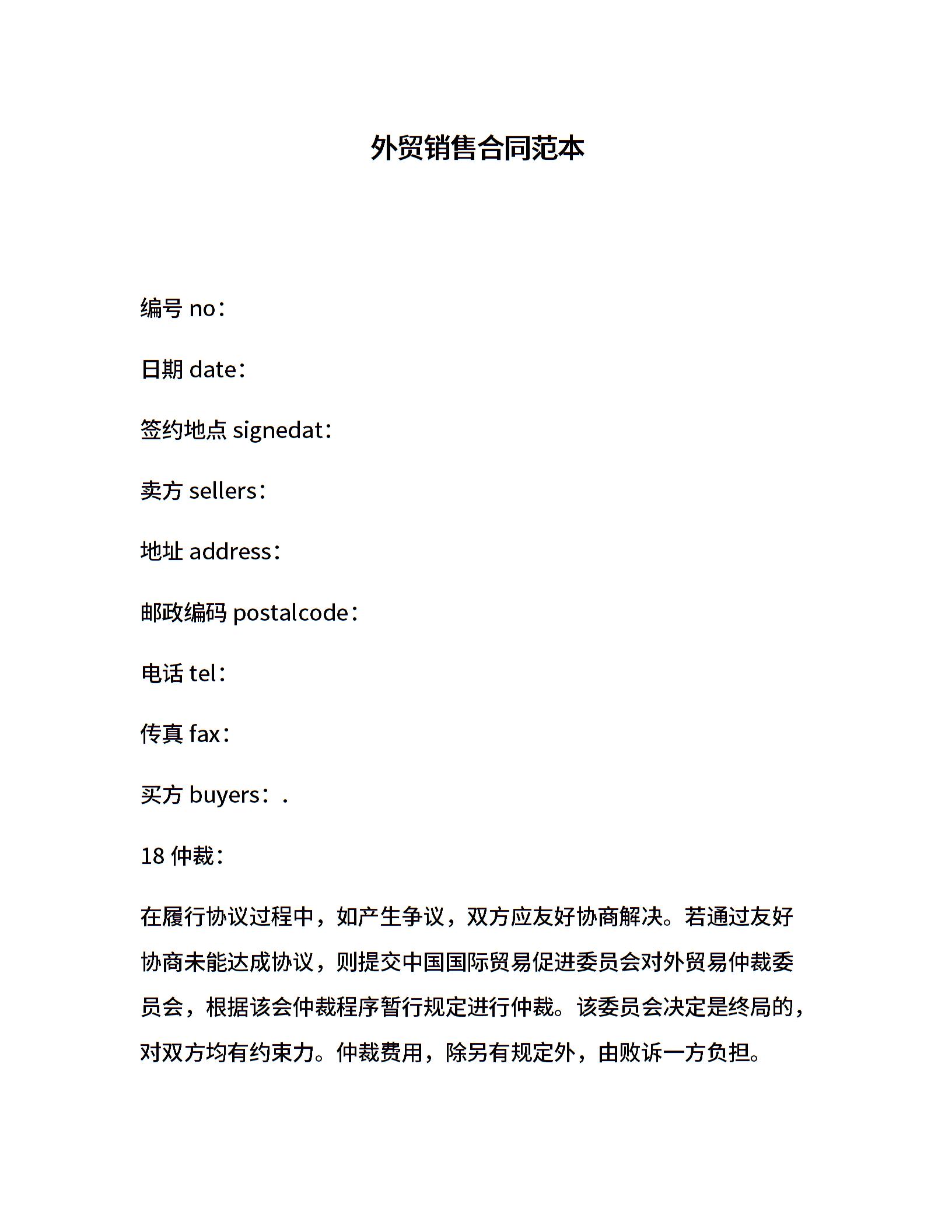 外贸销售合同范本