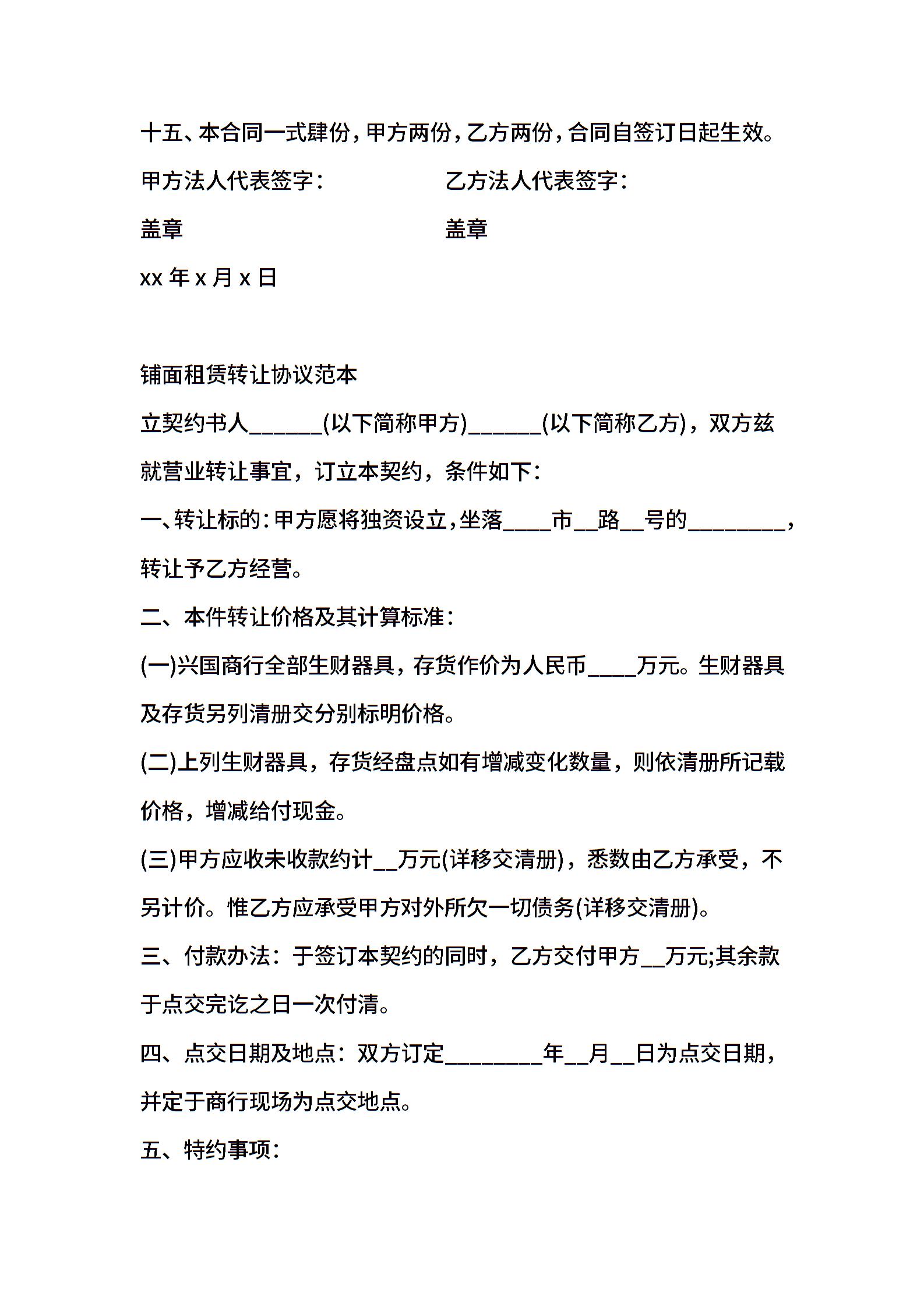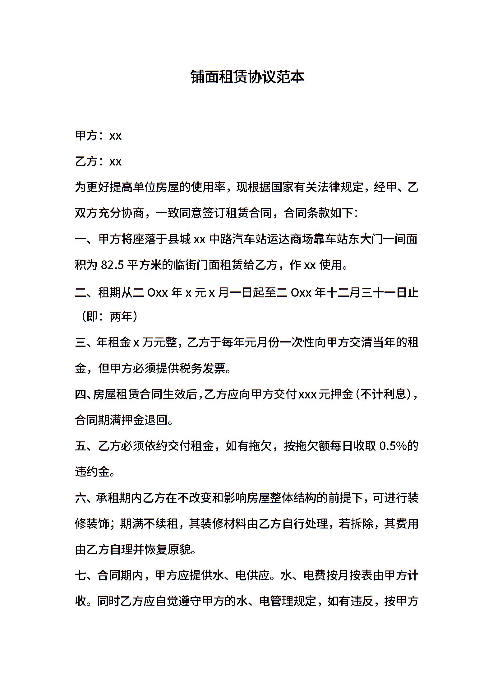铺面租赁协议范本