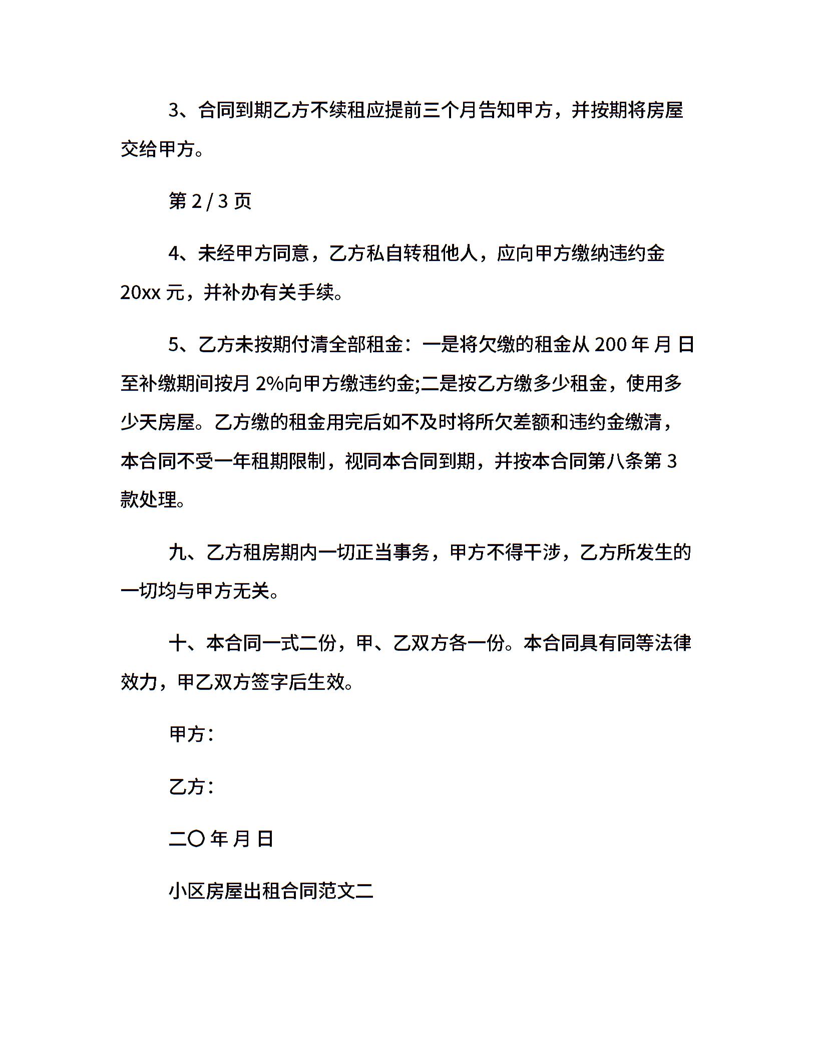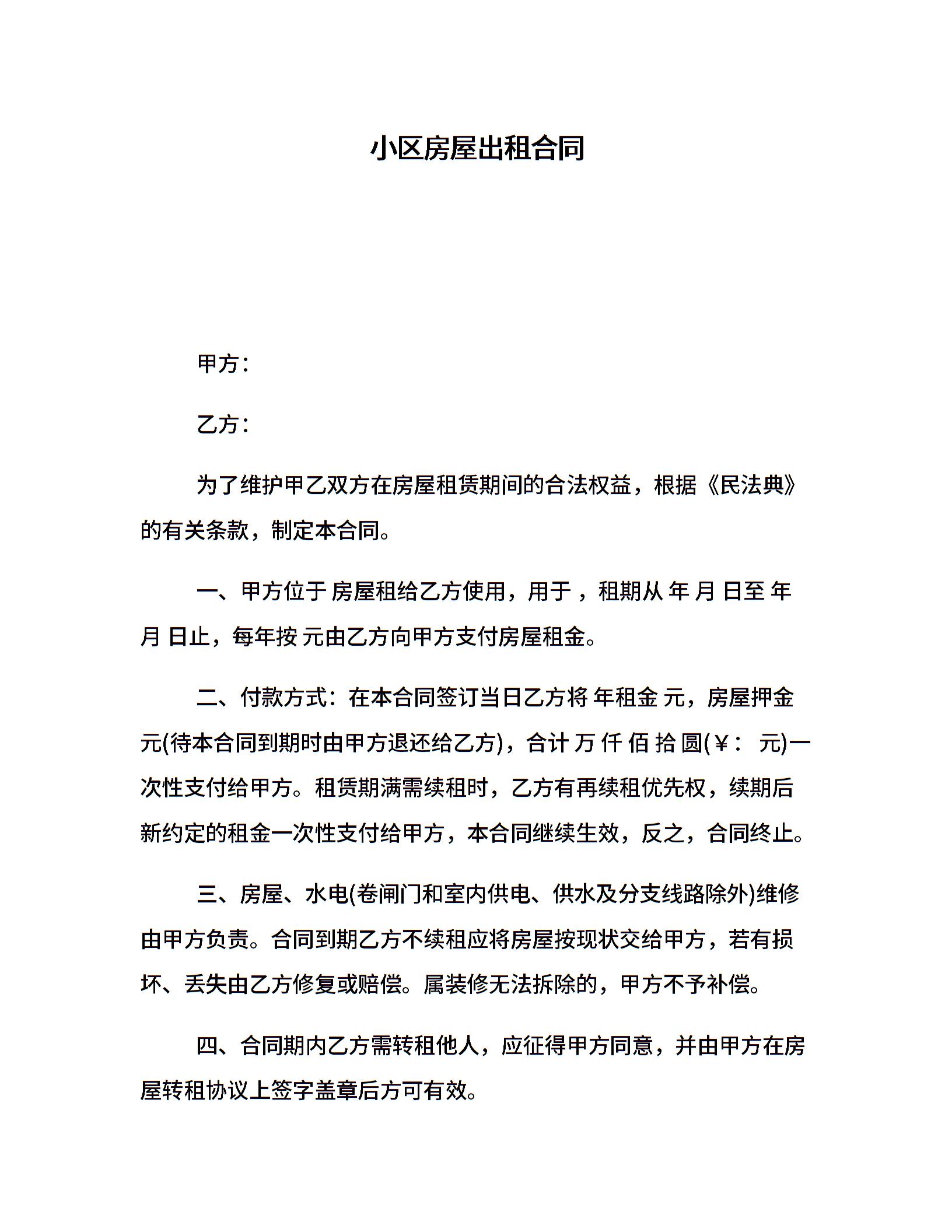 小区房屋出租合同