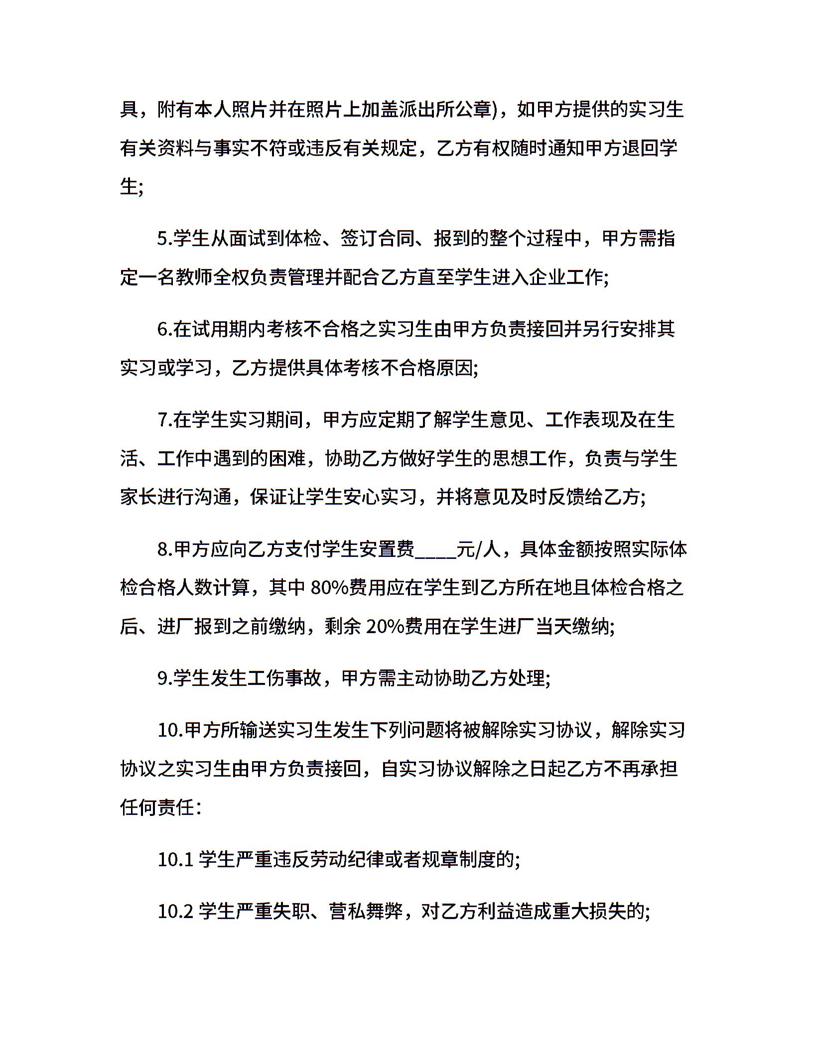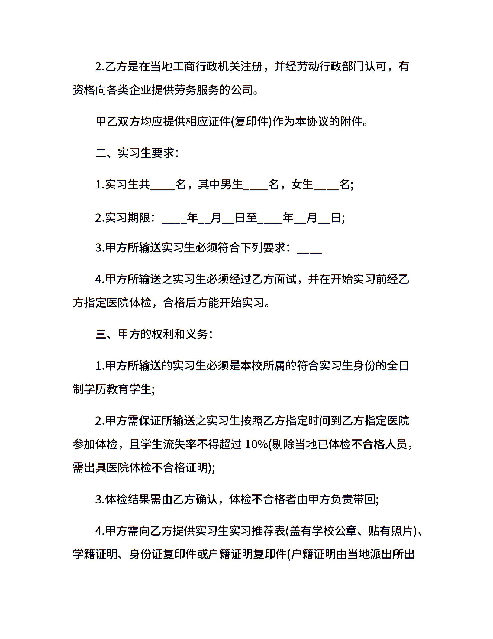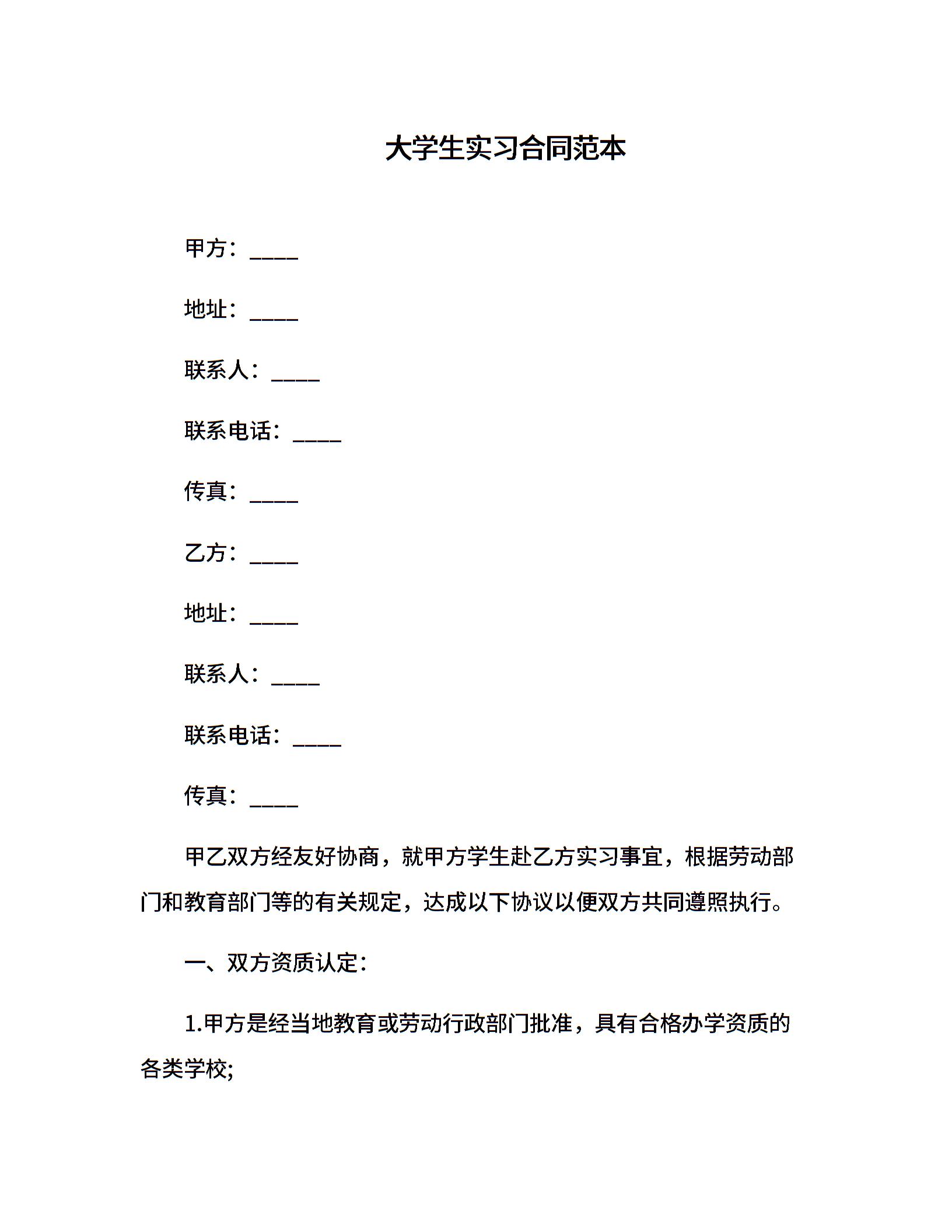 大学生实习合同范本