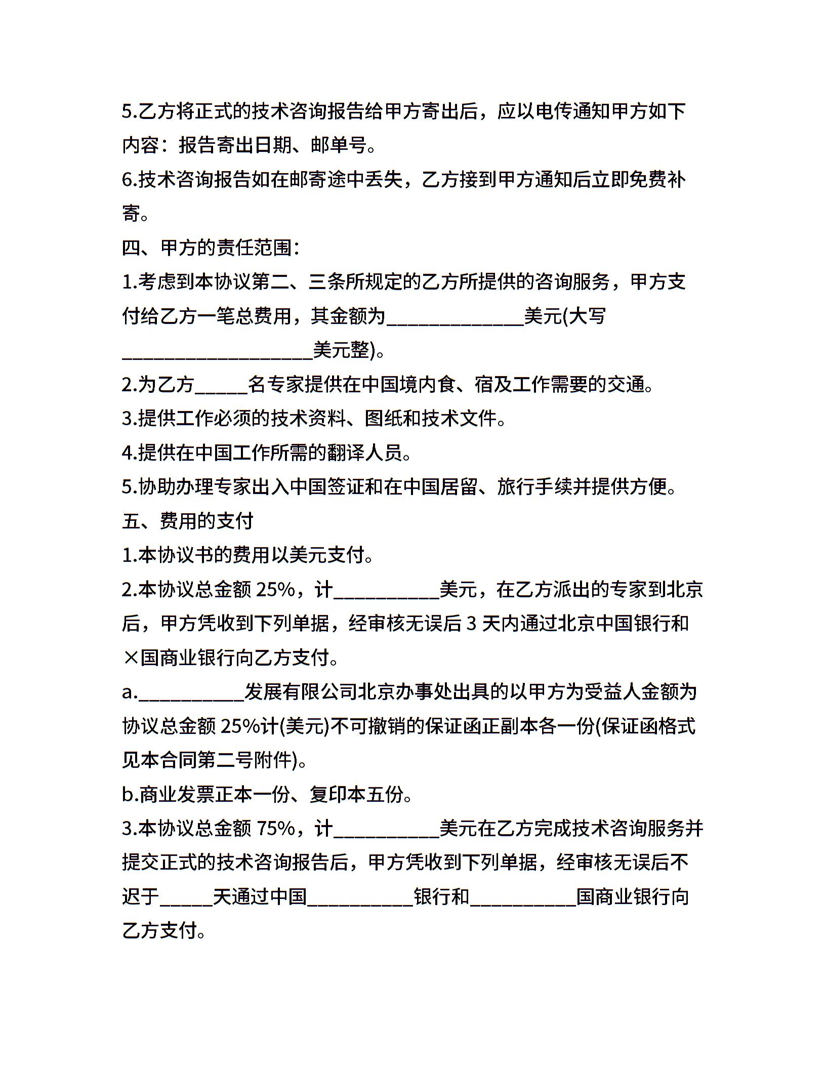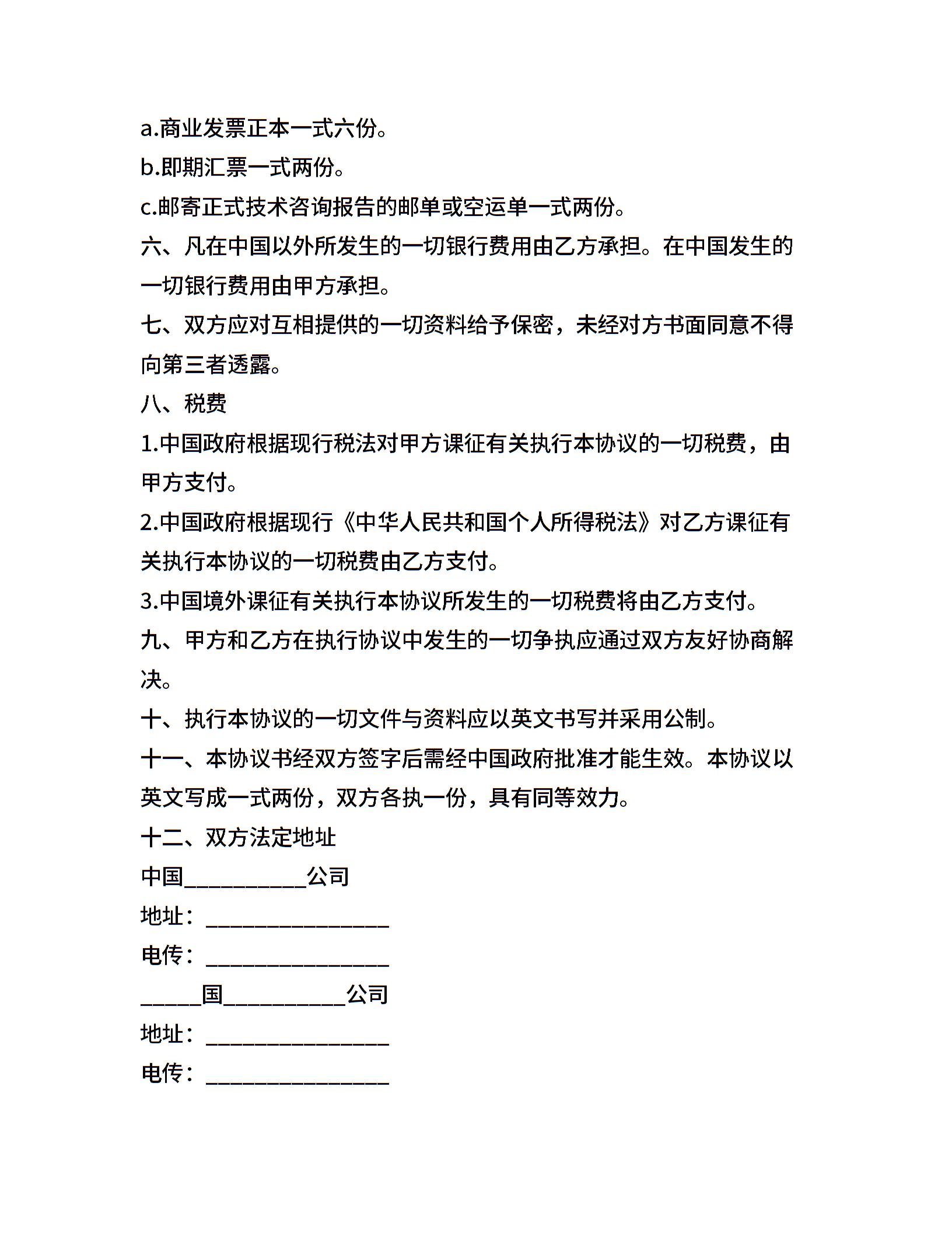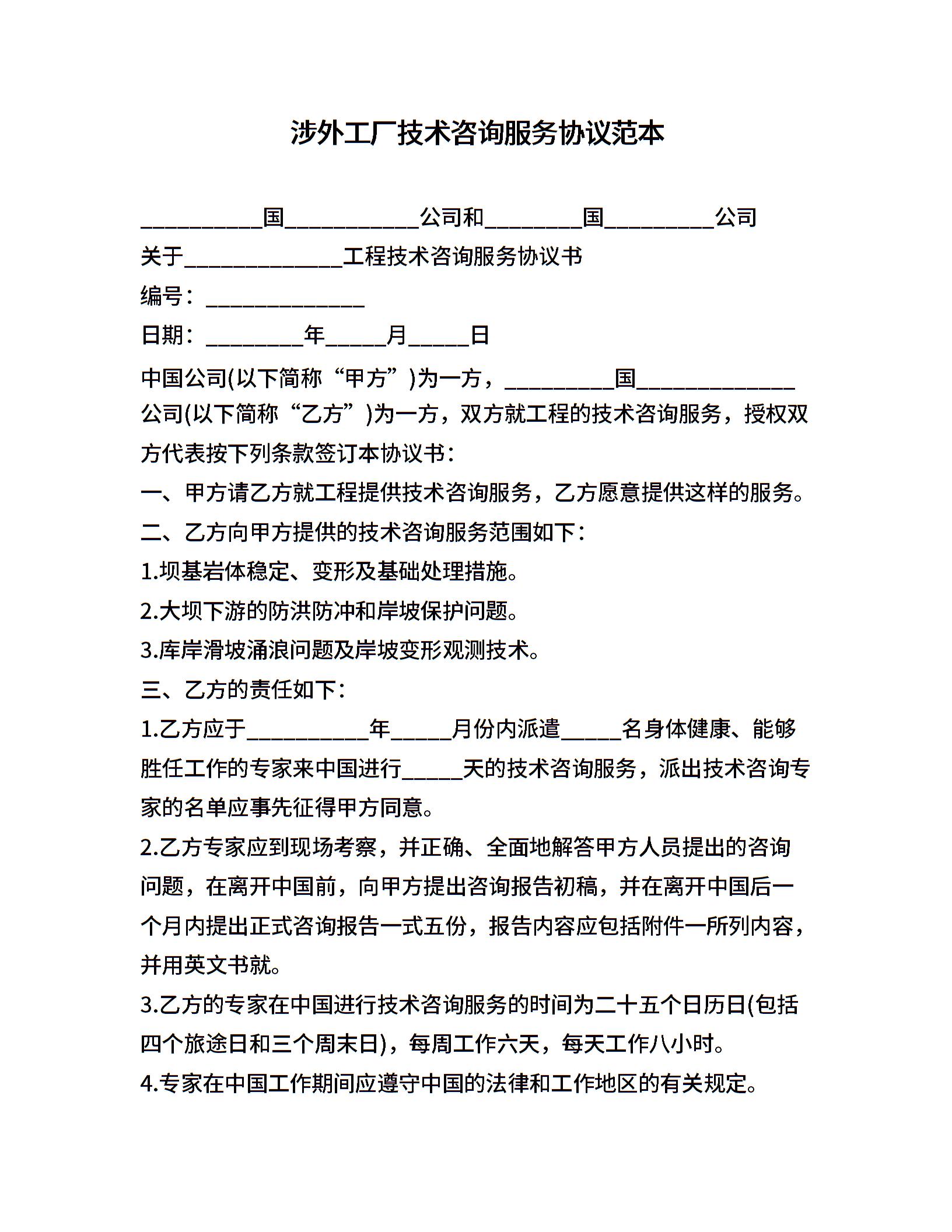 涉外工厂技术咨询服务协议范本