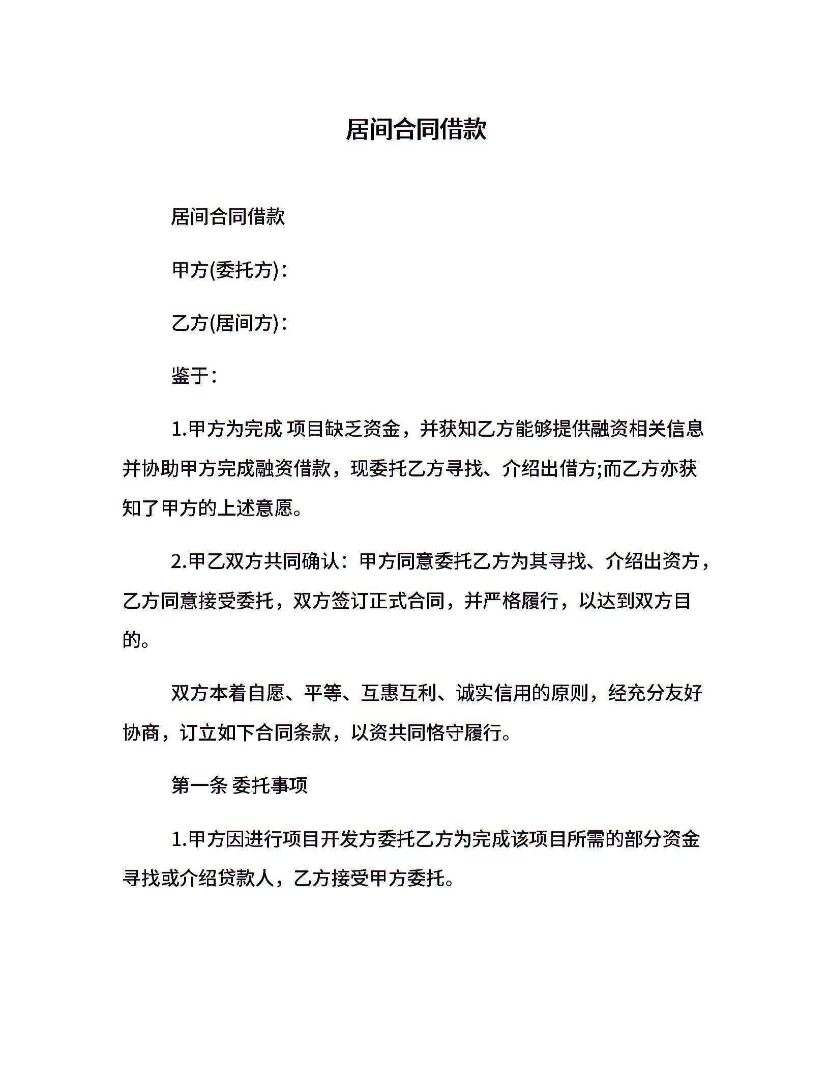 居间合同借款