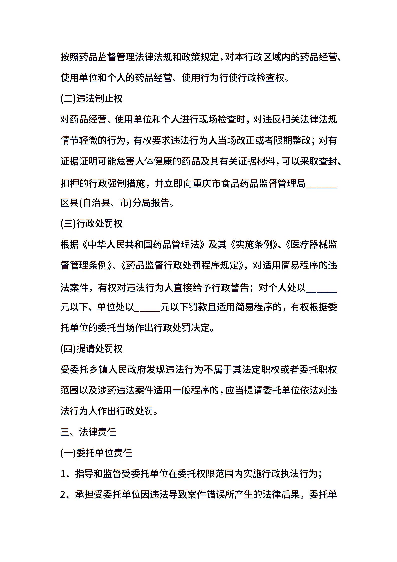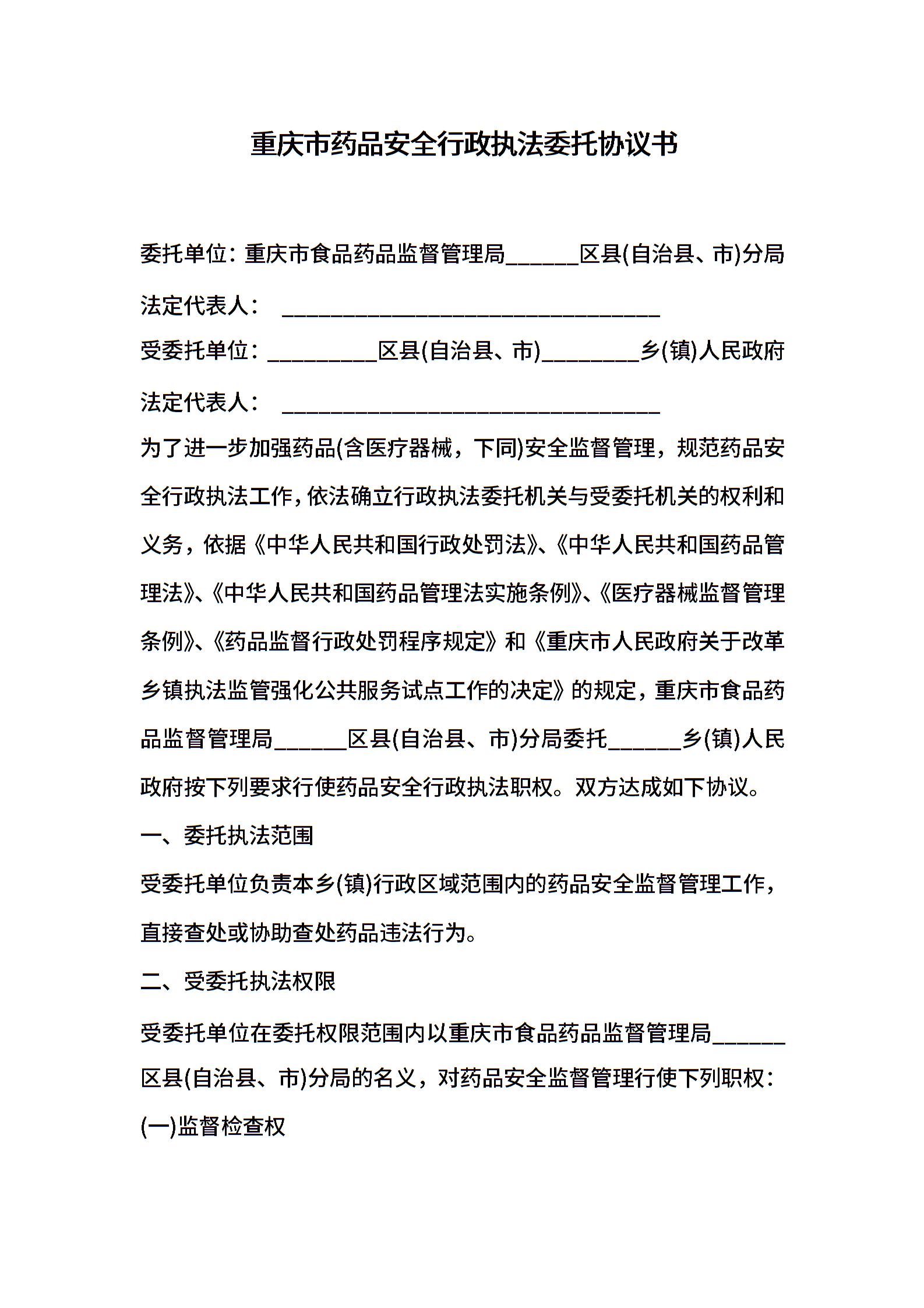 重庆市药品安全行政执法委托协议书