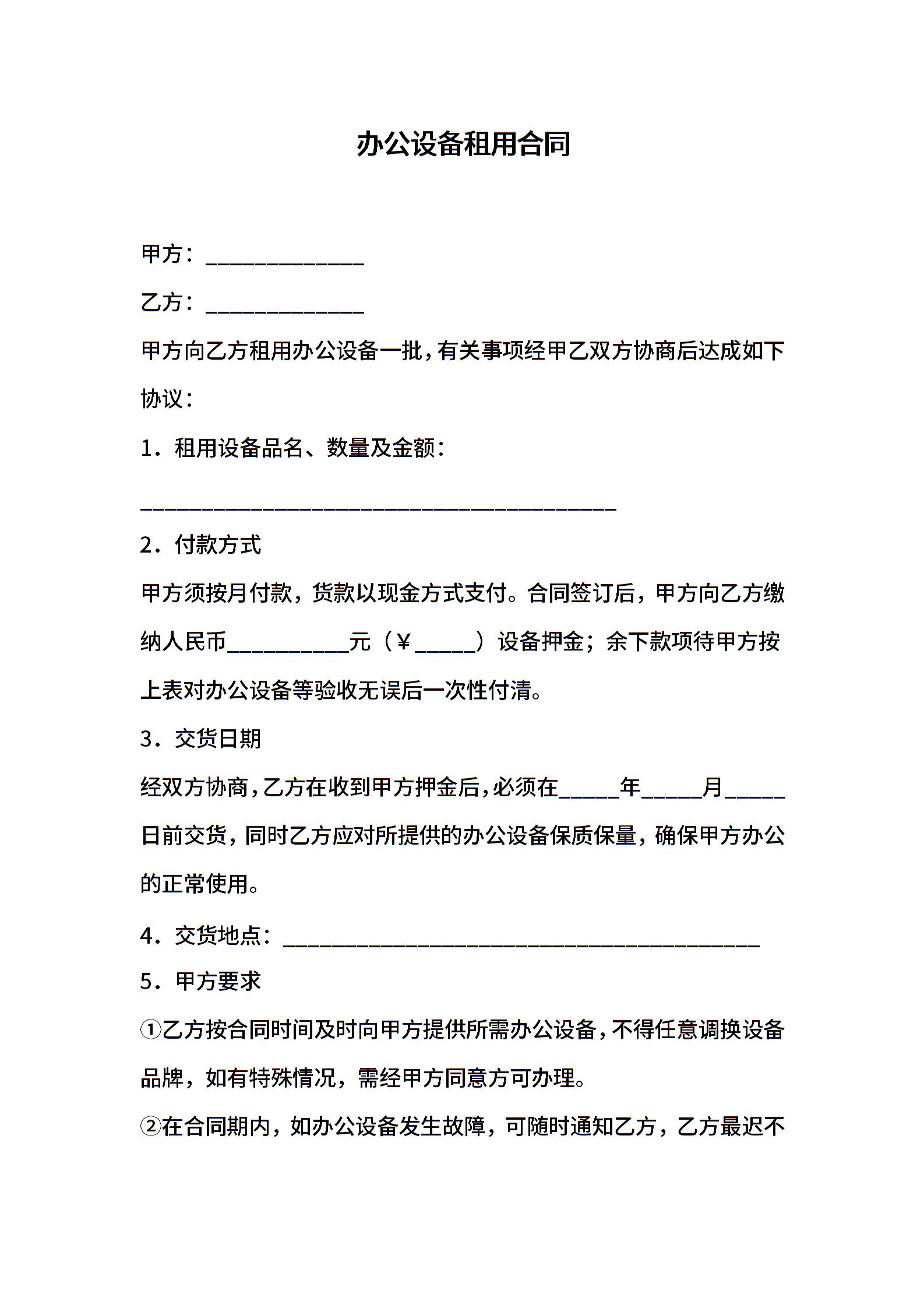 办公设备租用合同