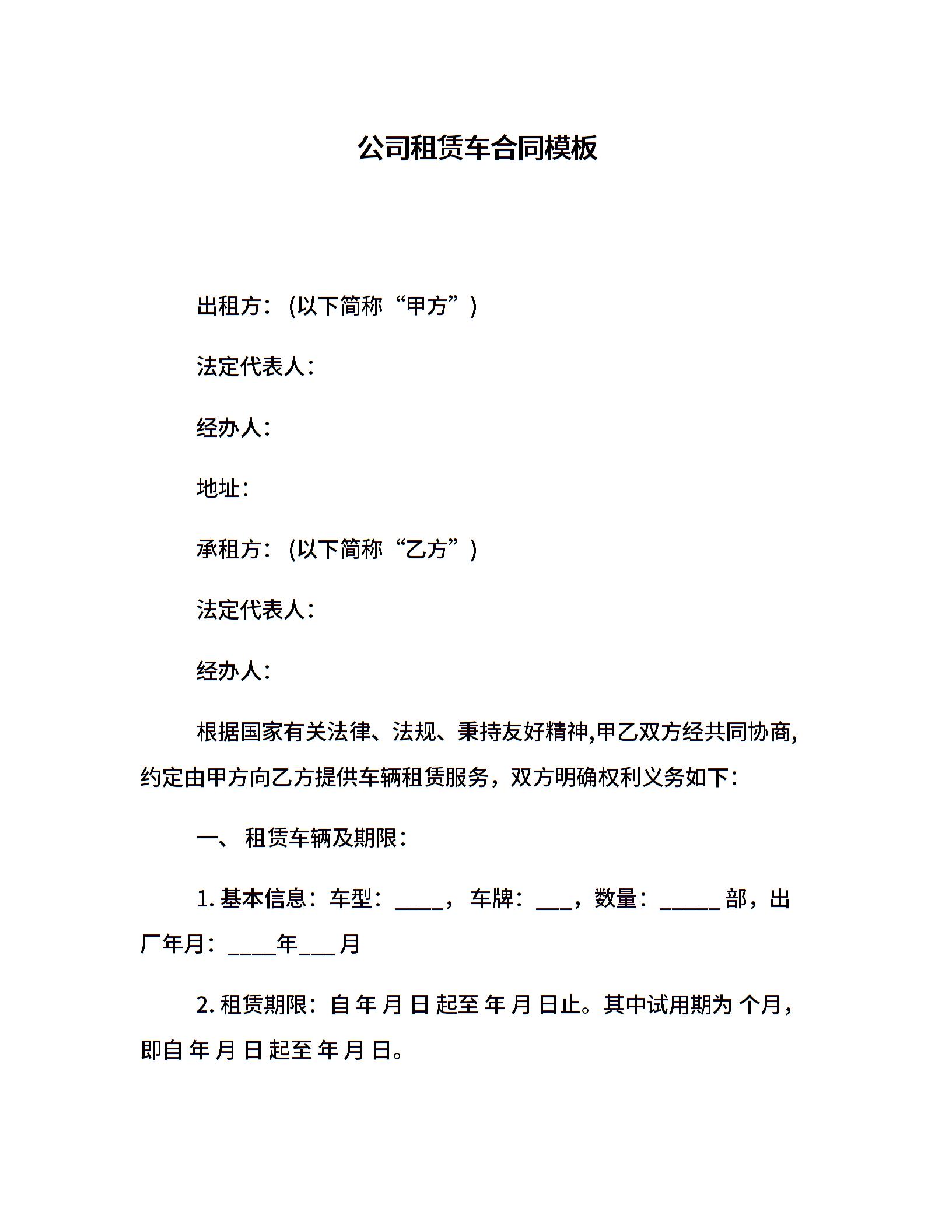 公司租赁车合同模板