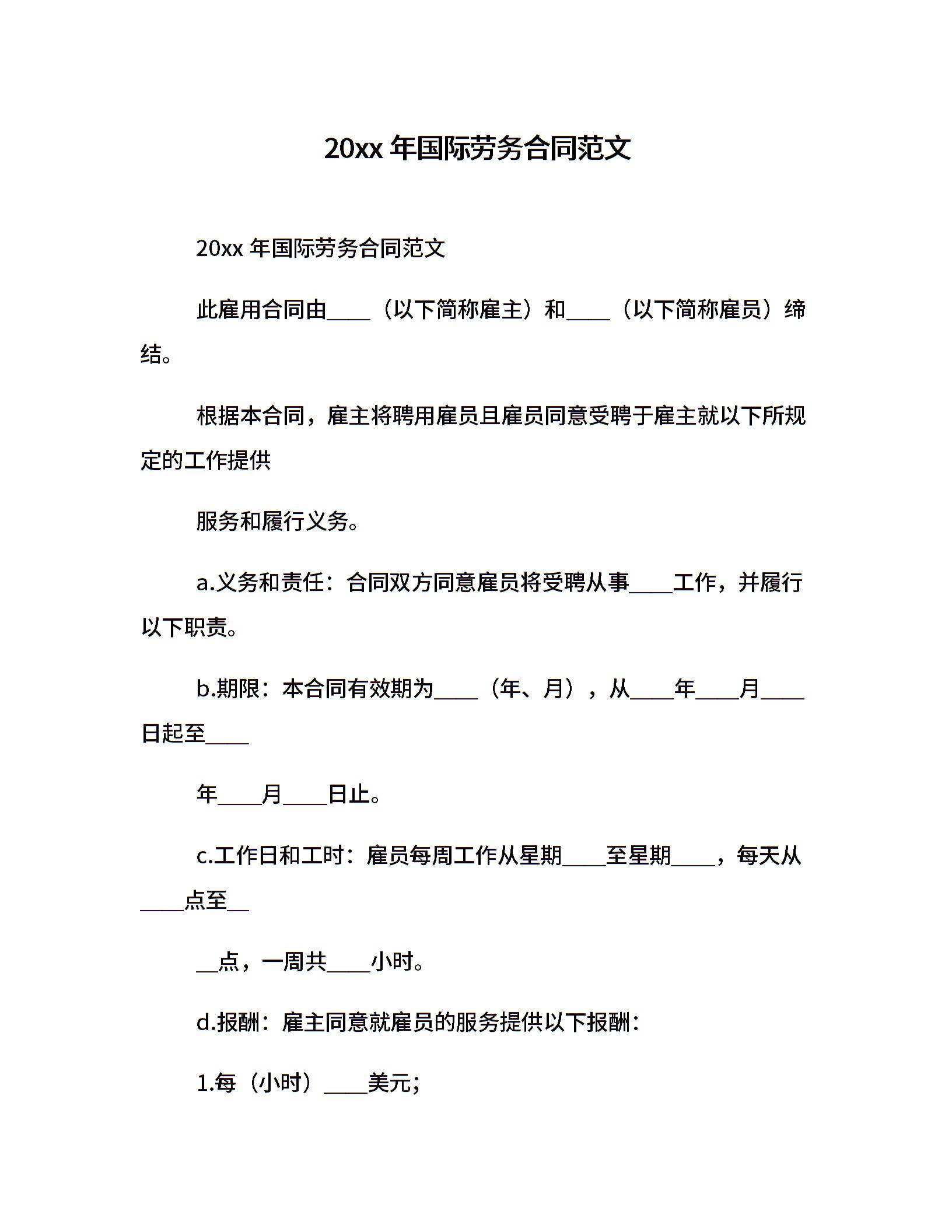 20xx年国际劳务合同范文