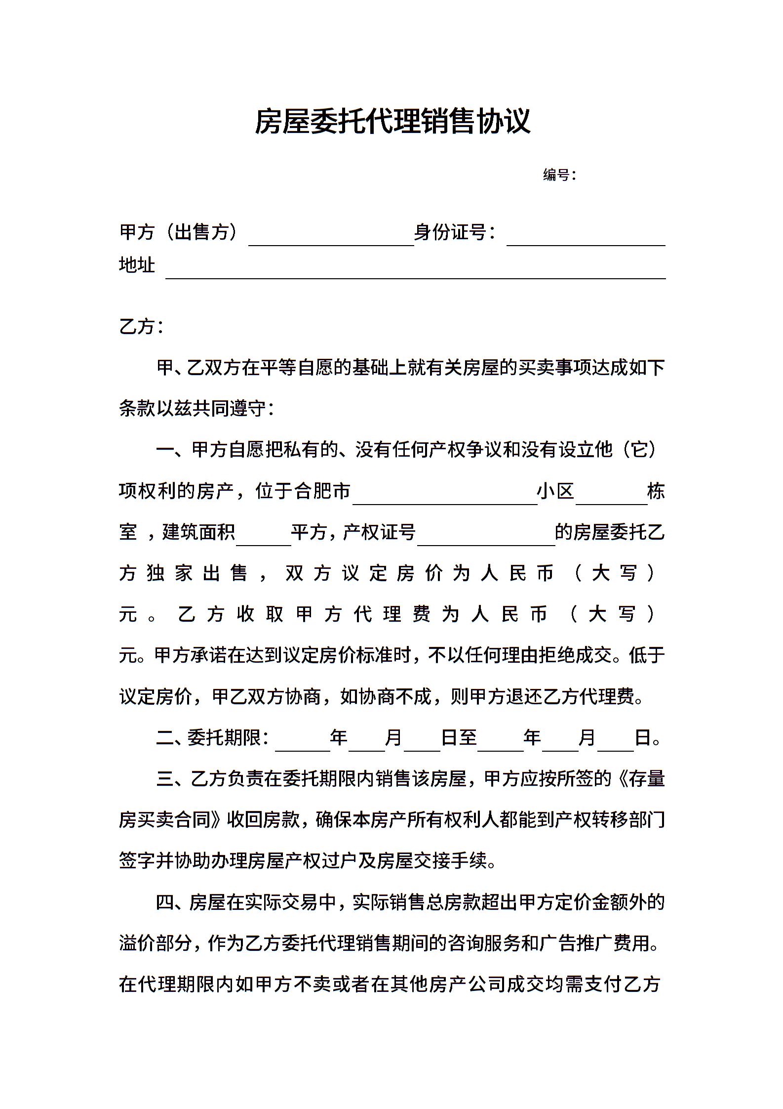 房屋委托代理销售协议