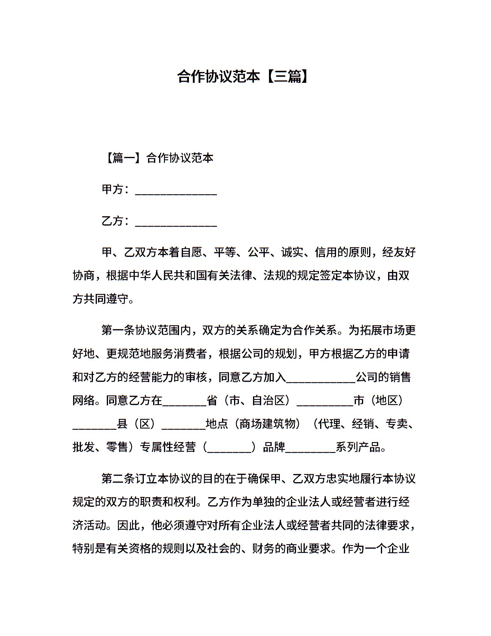 当前位置:量子办公 > 合同模板 > 合作合同 >