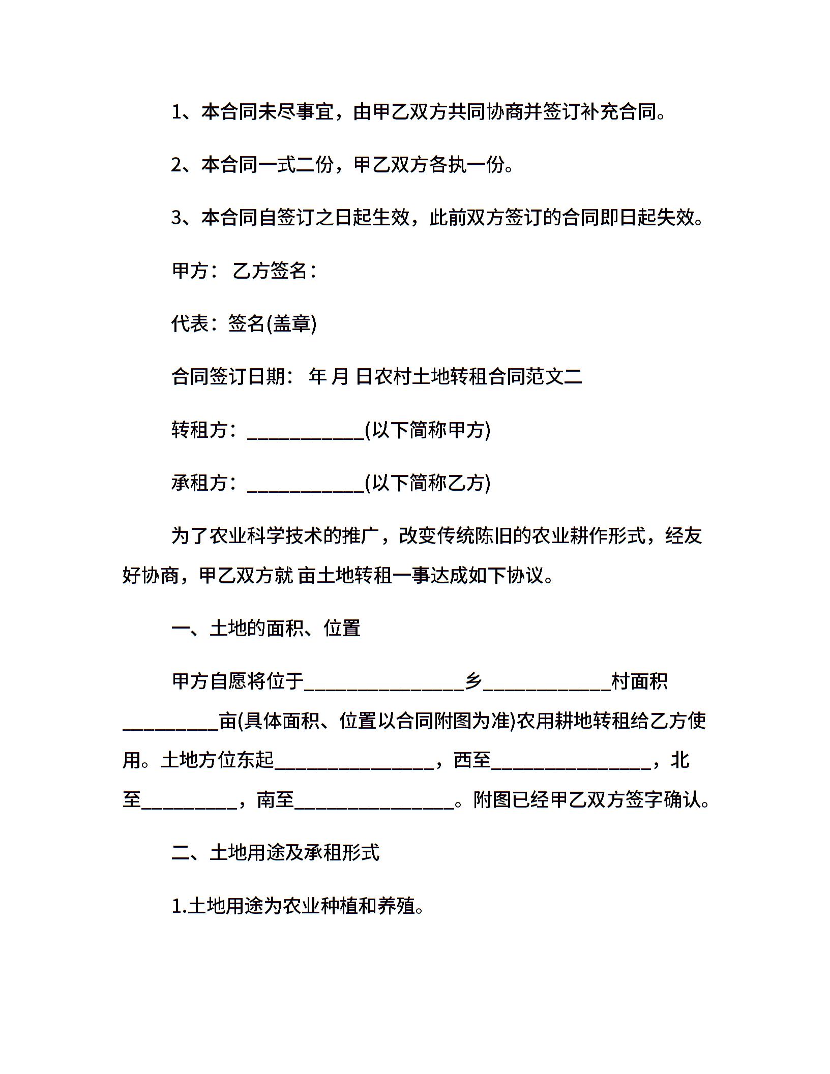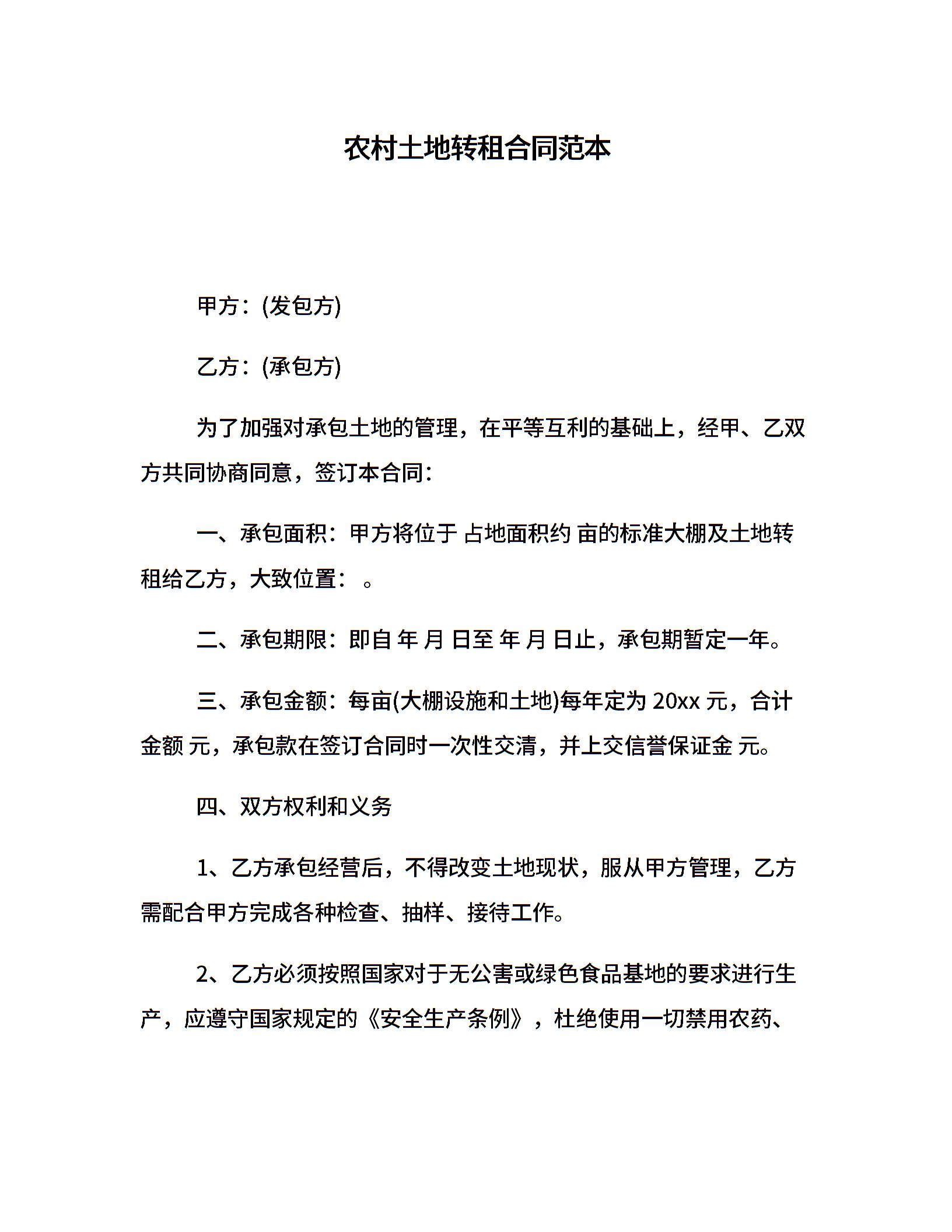 农村土地转租合同范本