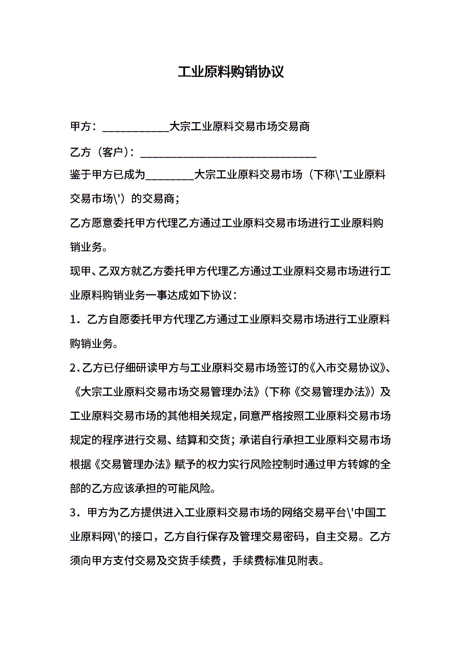 工业原料购销协议