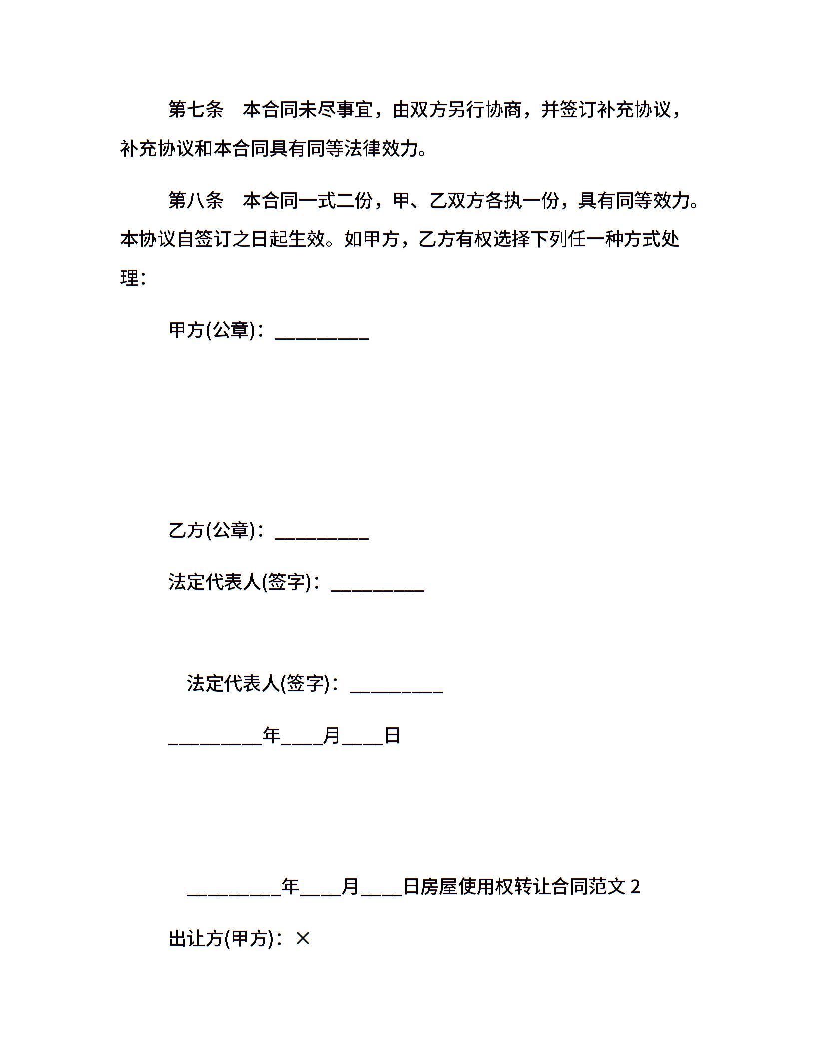 房屋使用权转让合同