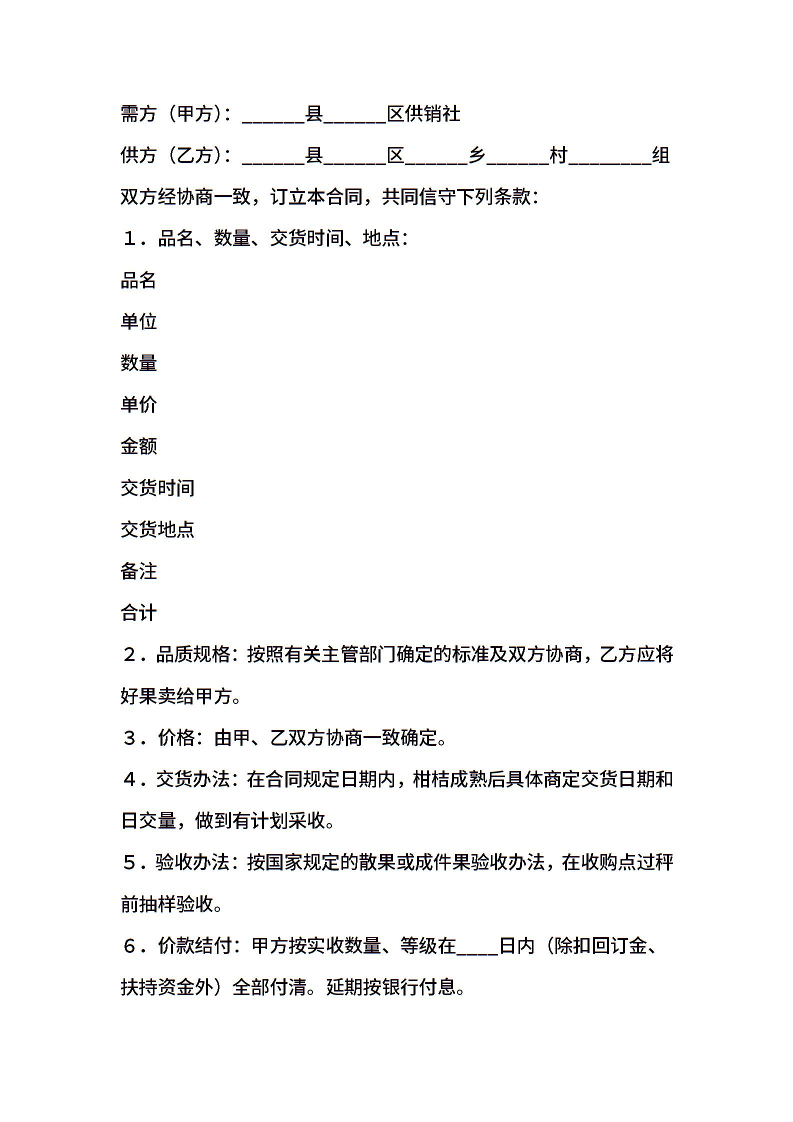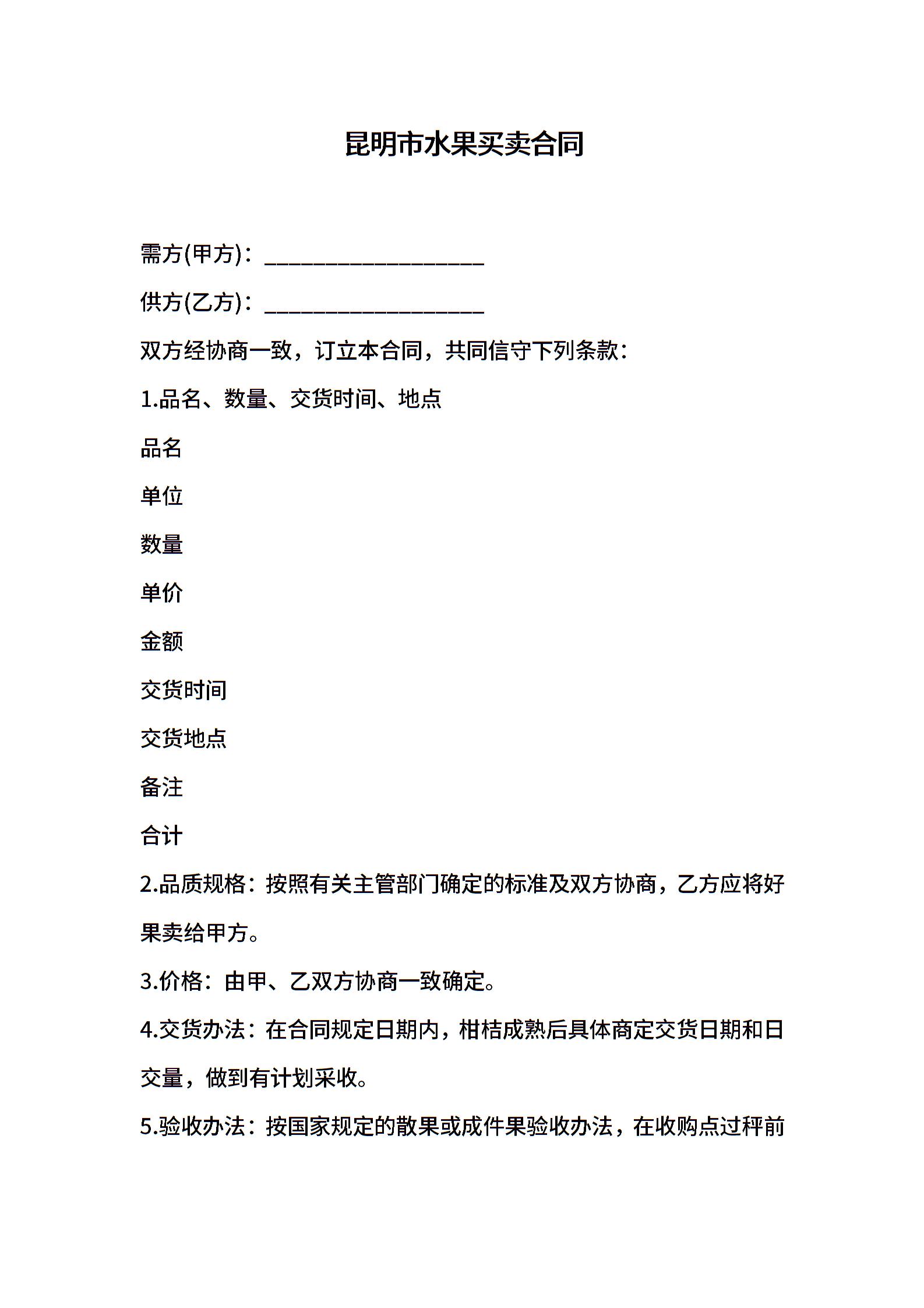 昆明市水果买卖合同