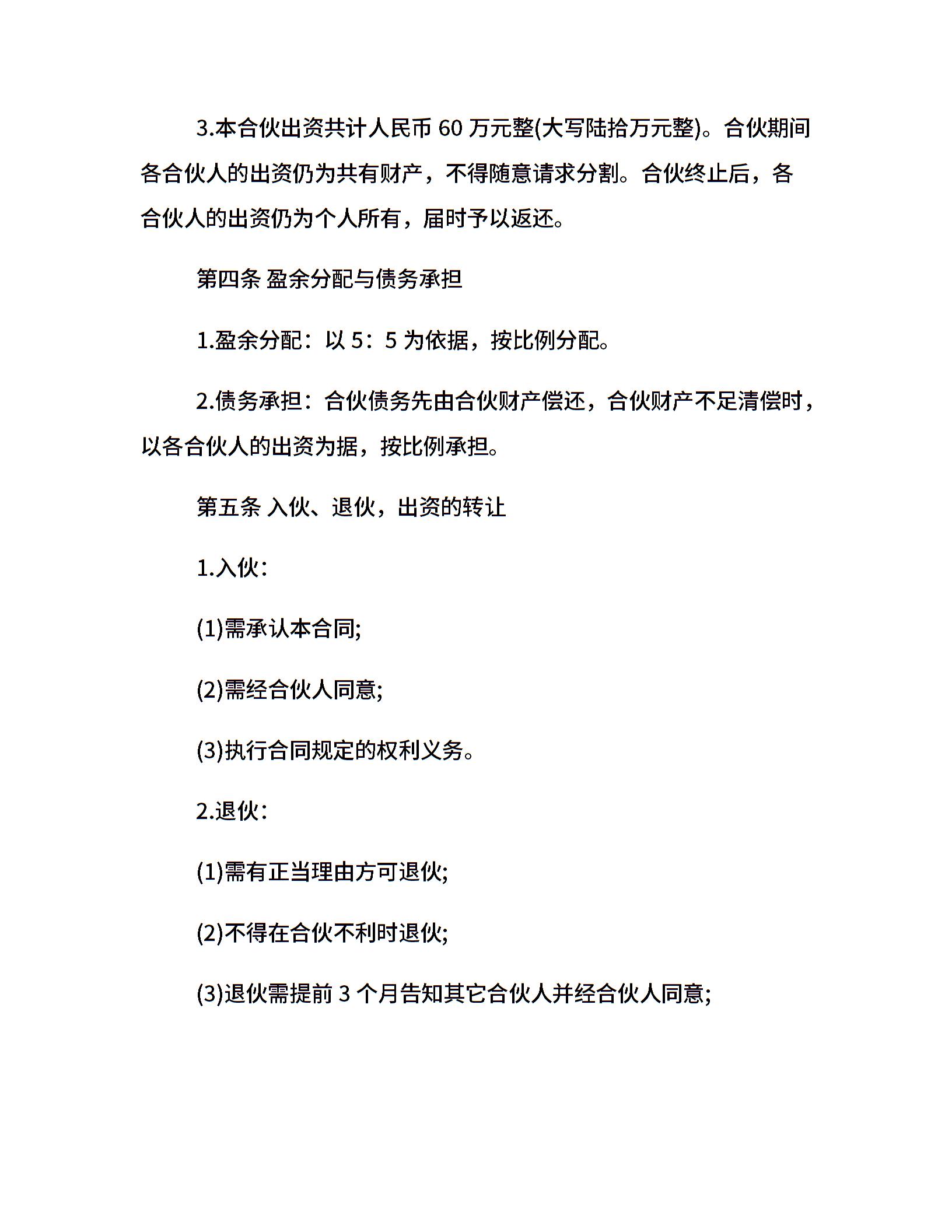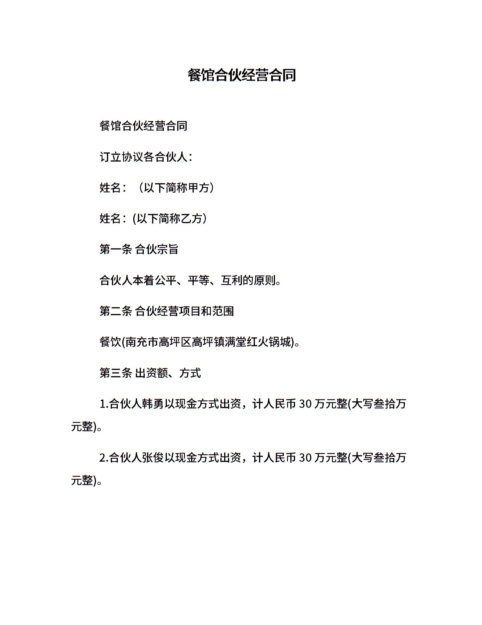 餐馆合伙经营合同