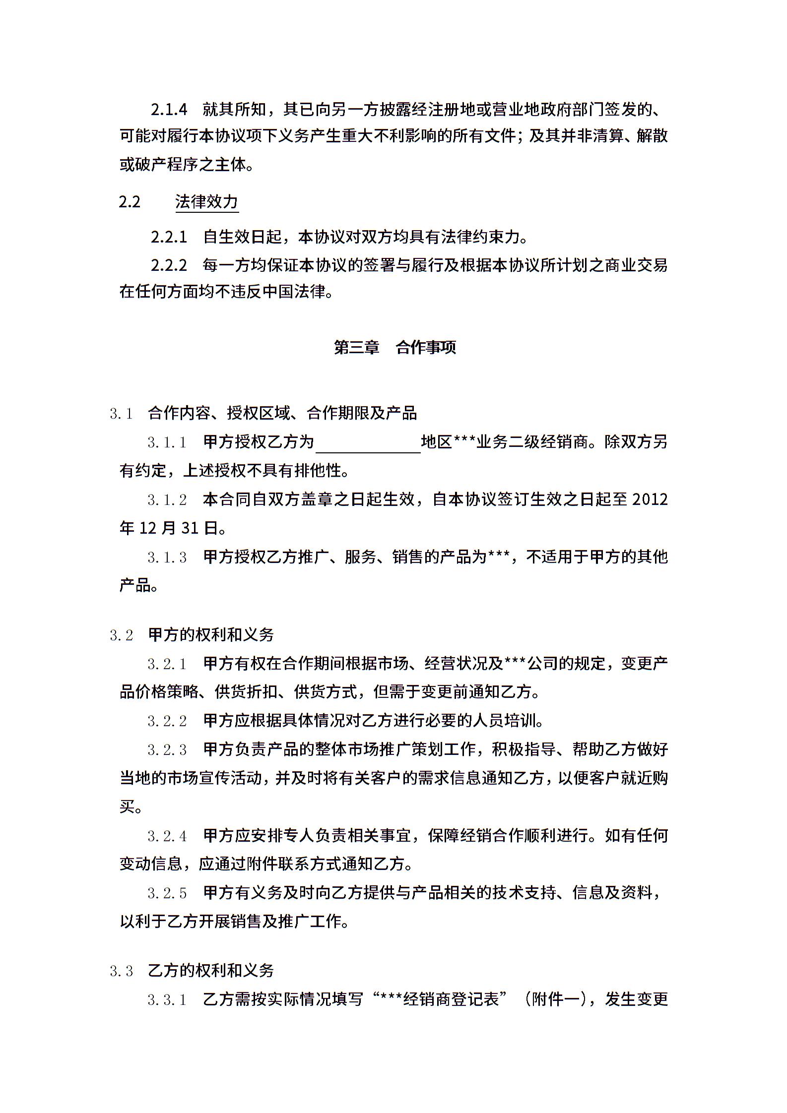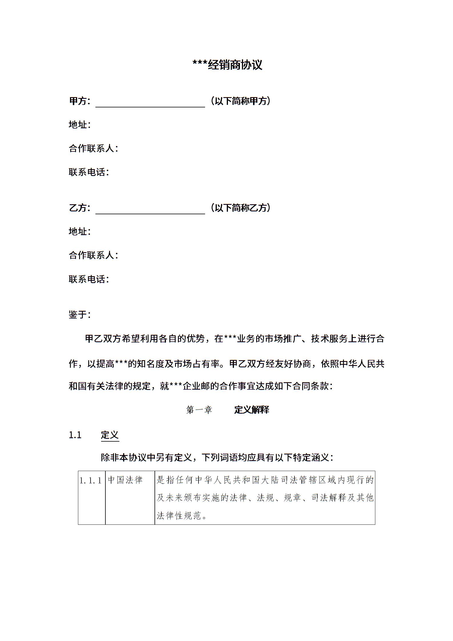 二级经销商协议模板(1)