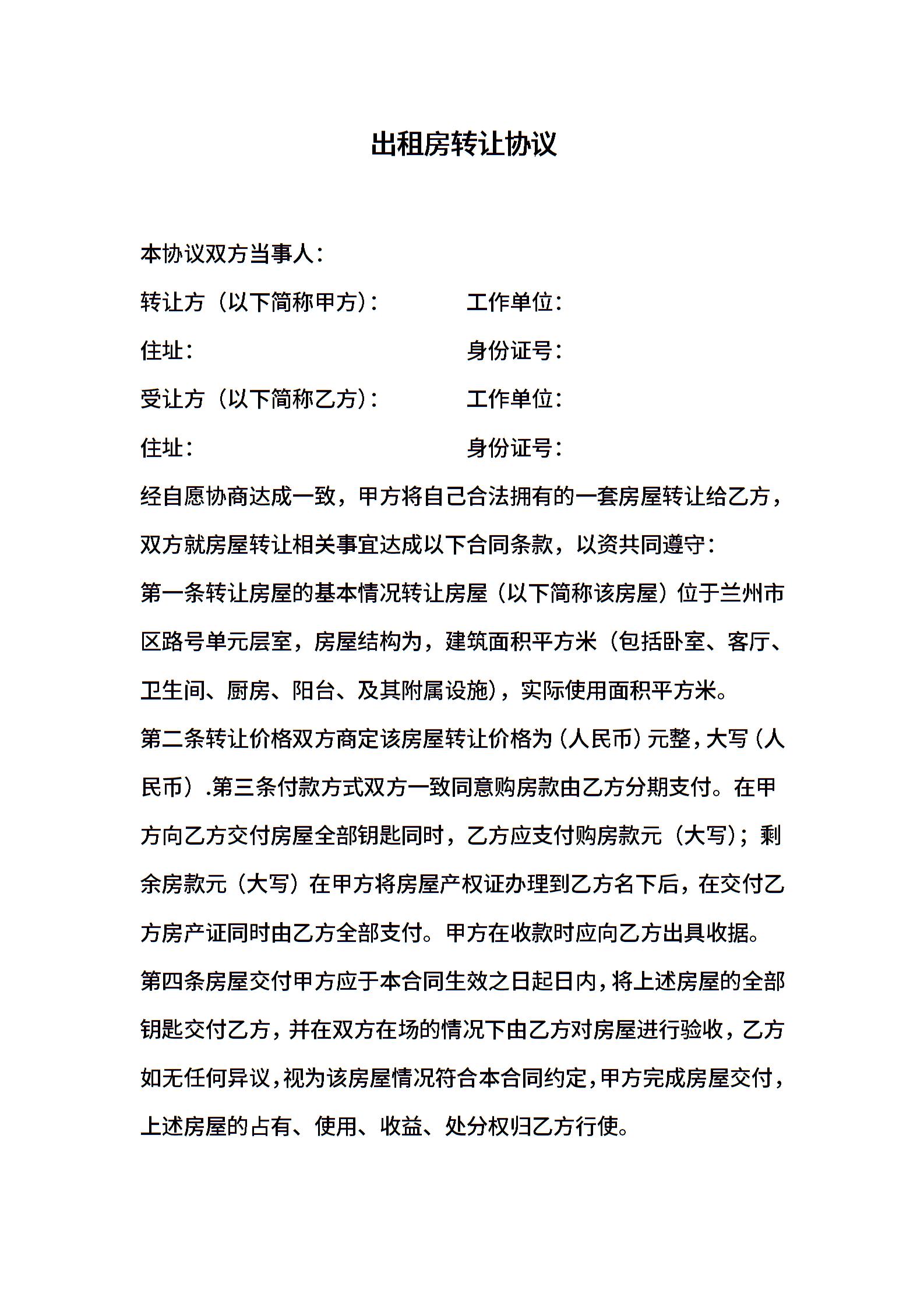 出租房转让协议