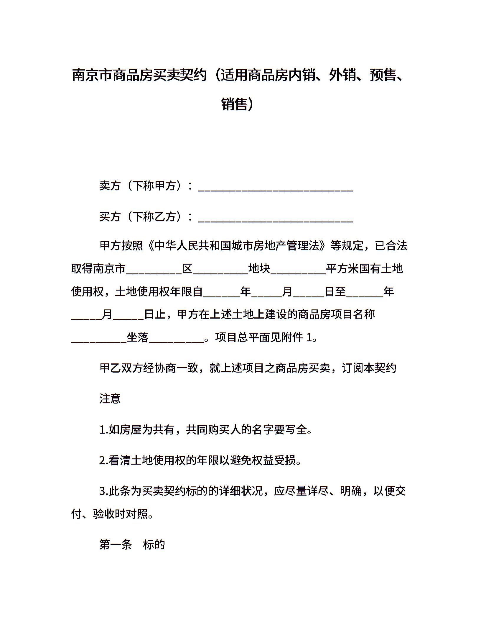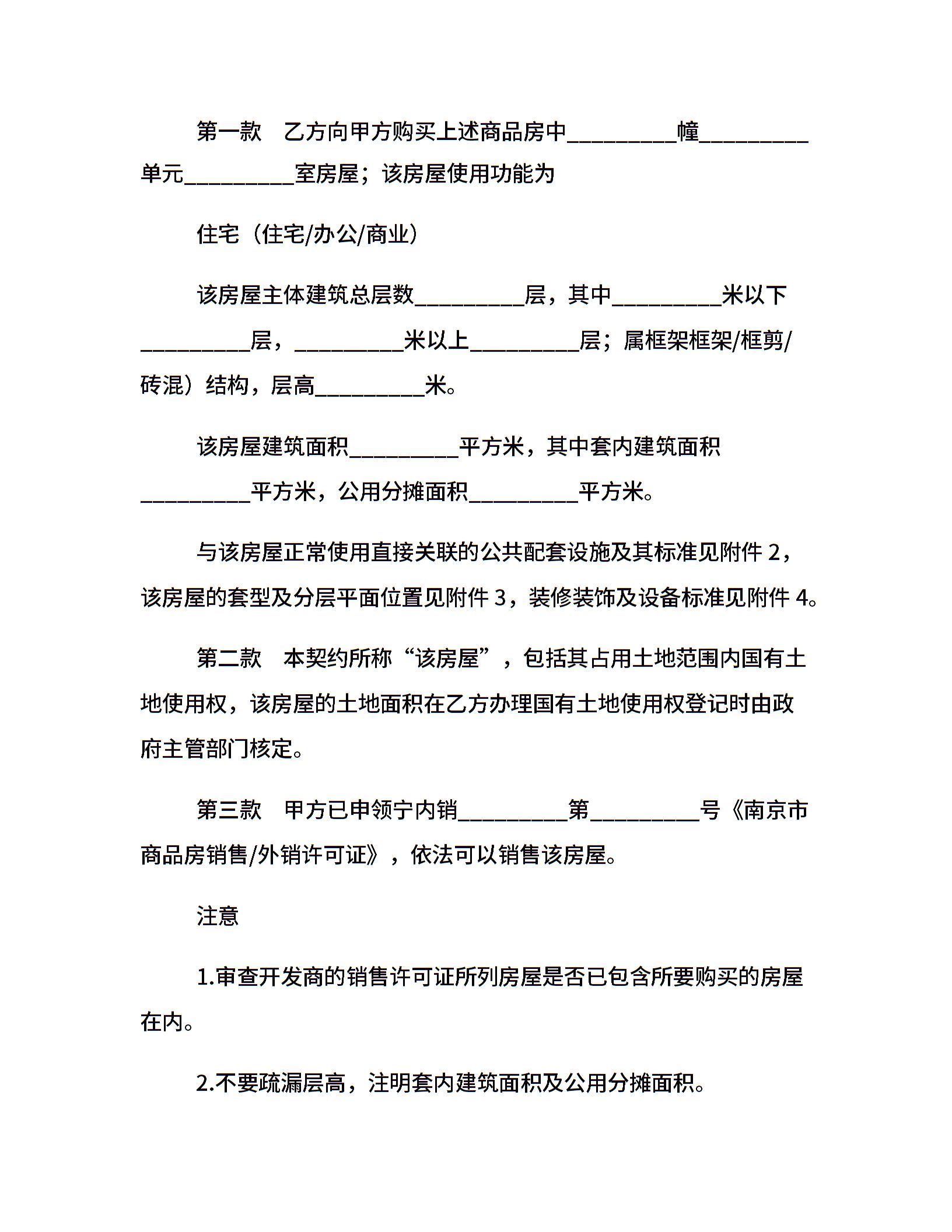 南京市商品房买卖契约(适用商品房内销、外销、预售、销售)