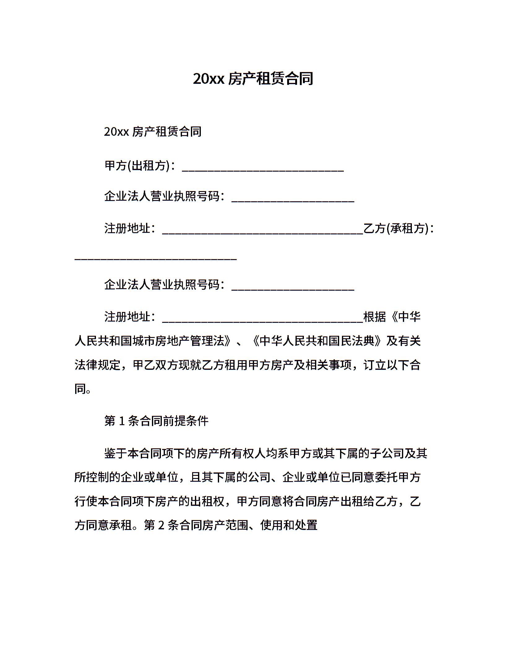 20xx房产租赁合同