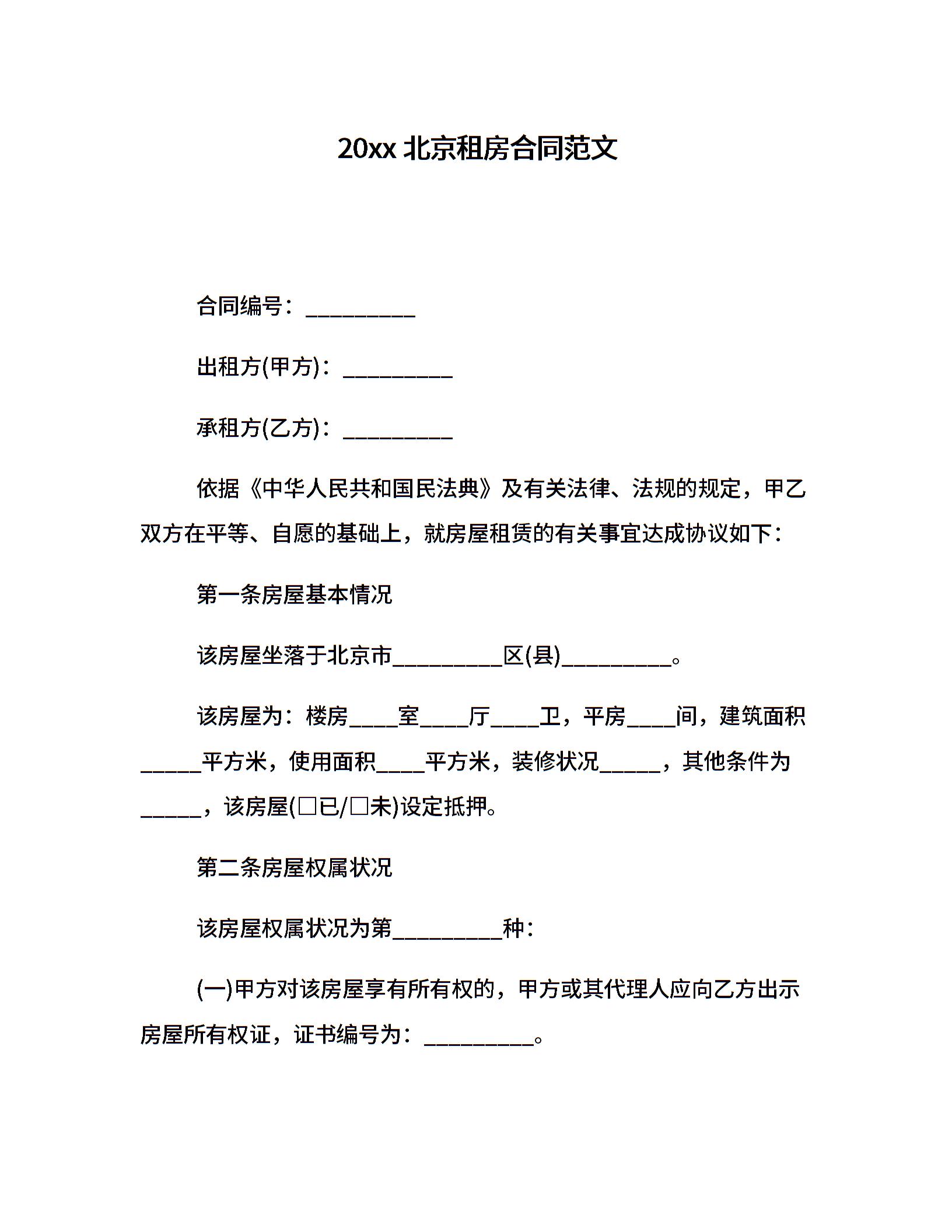 20xx北京租房合同范文