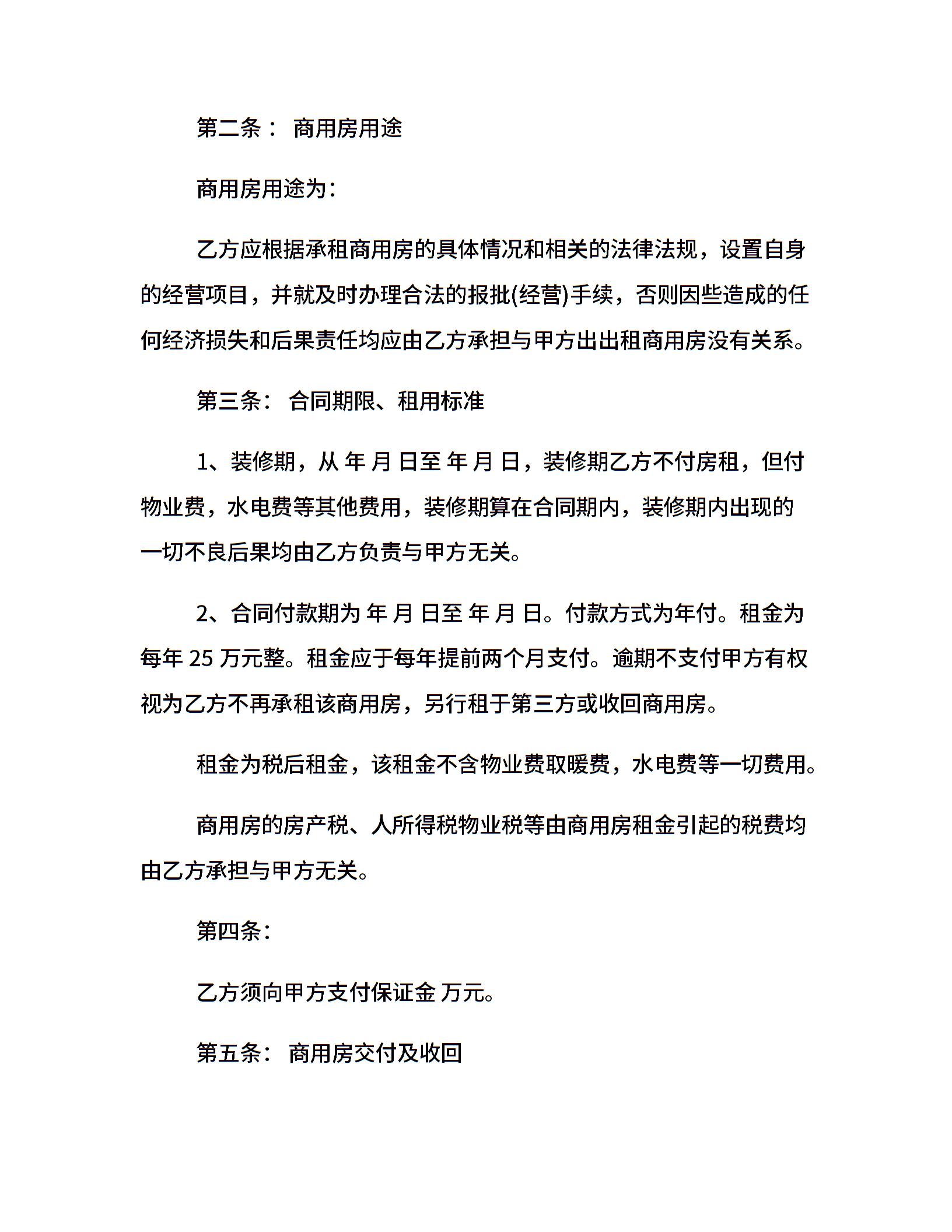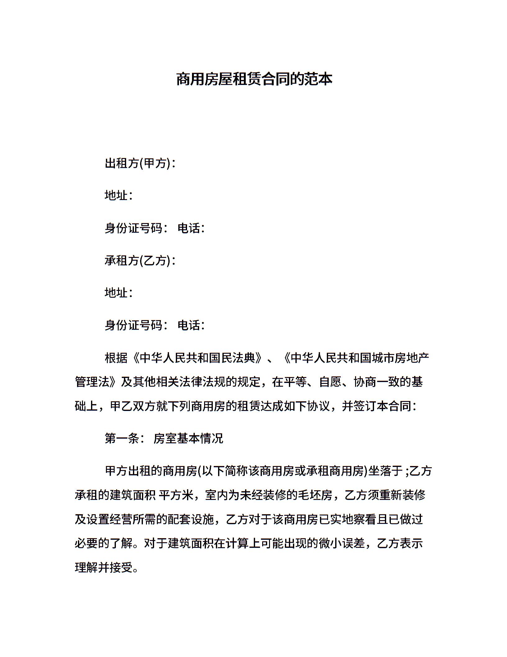 商用房屋租赁合同的范本