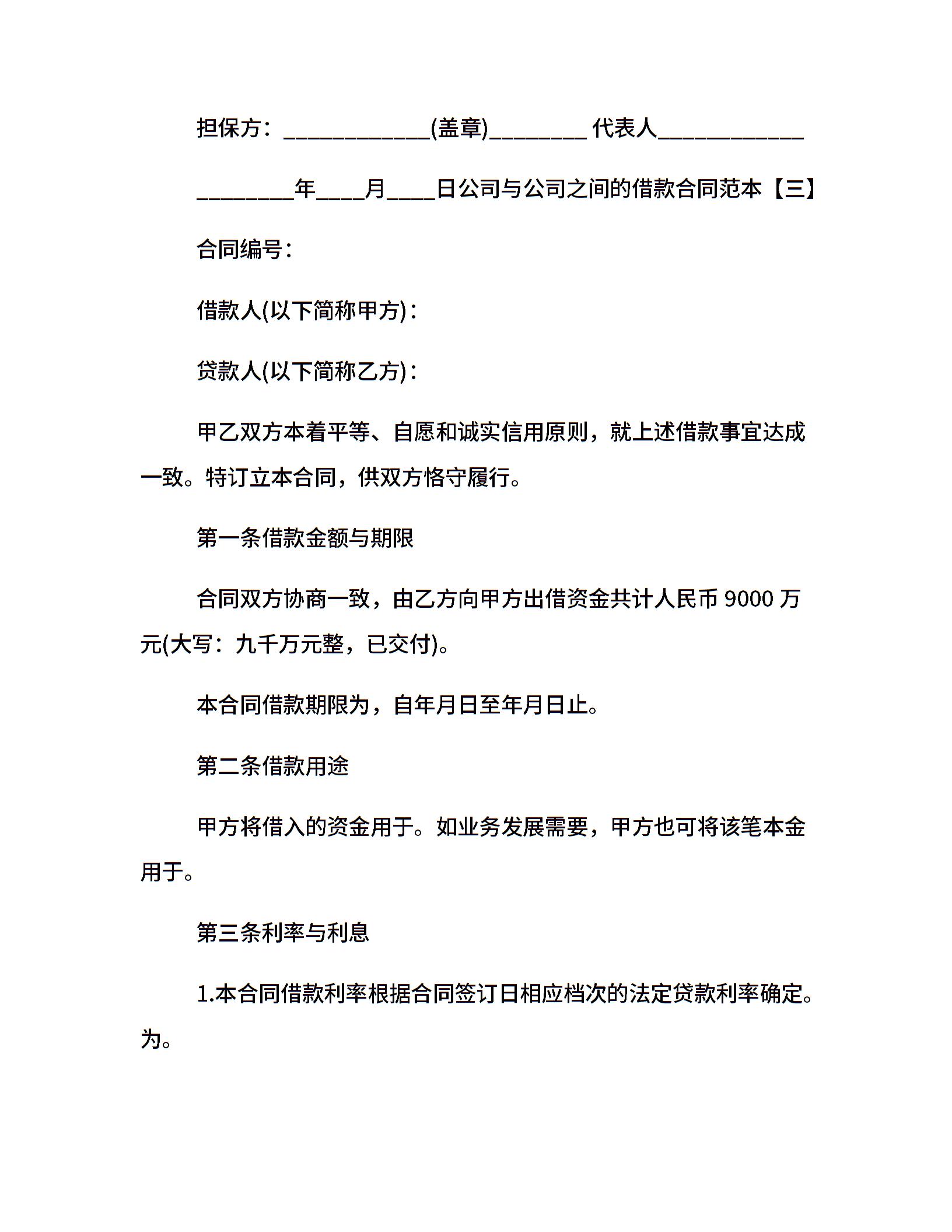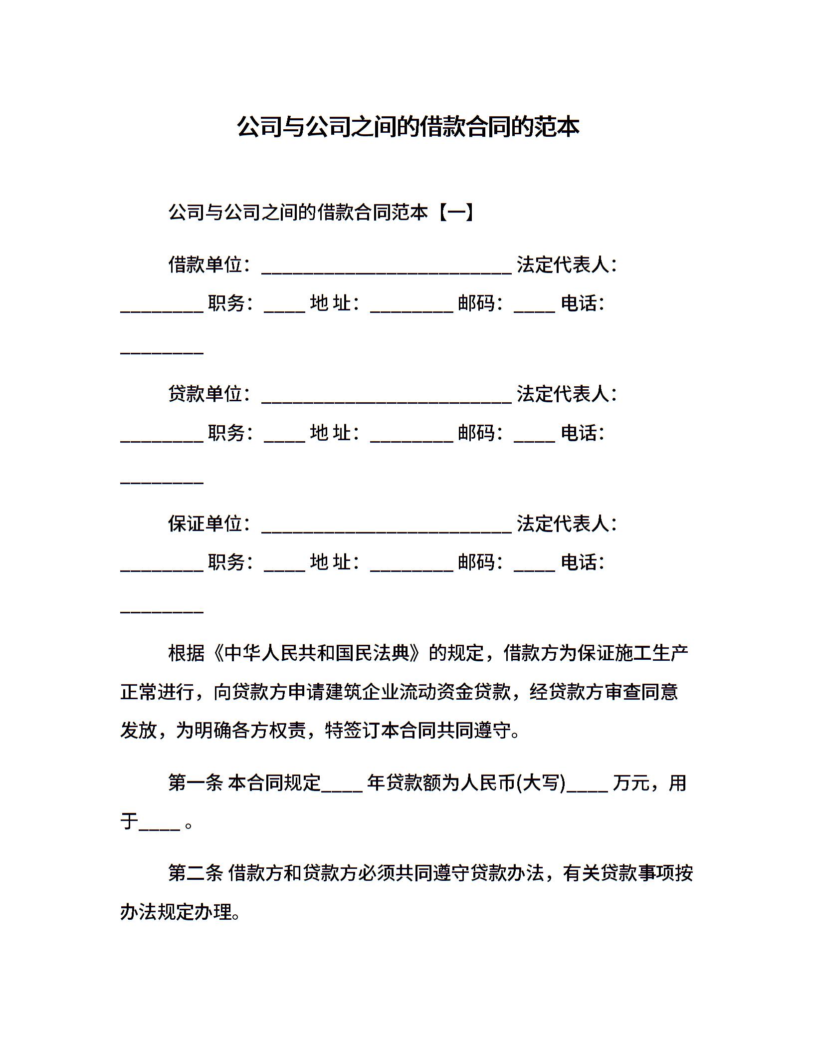 公司与公司之间的借款合同的范本