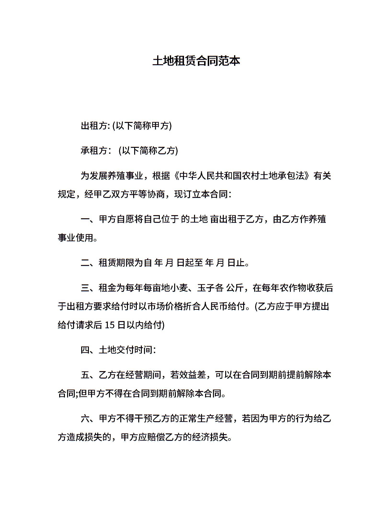 土地租赁合同范本