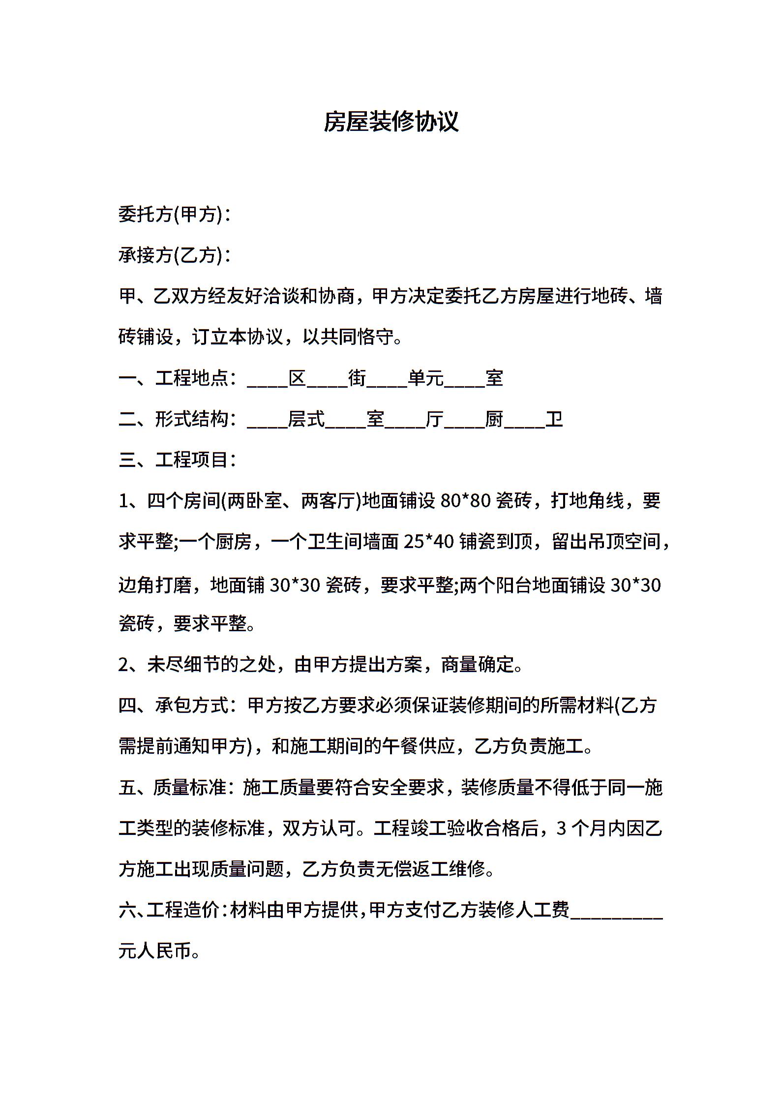 房屋装修协议范本