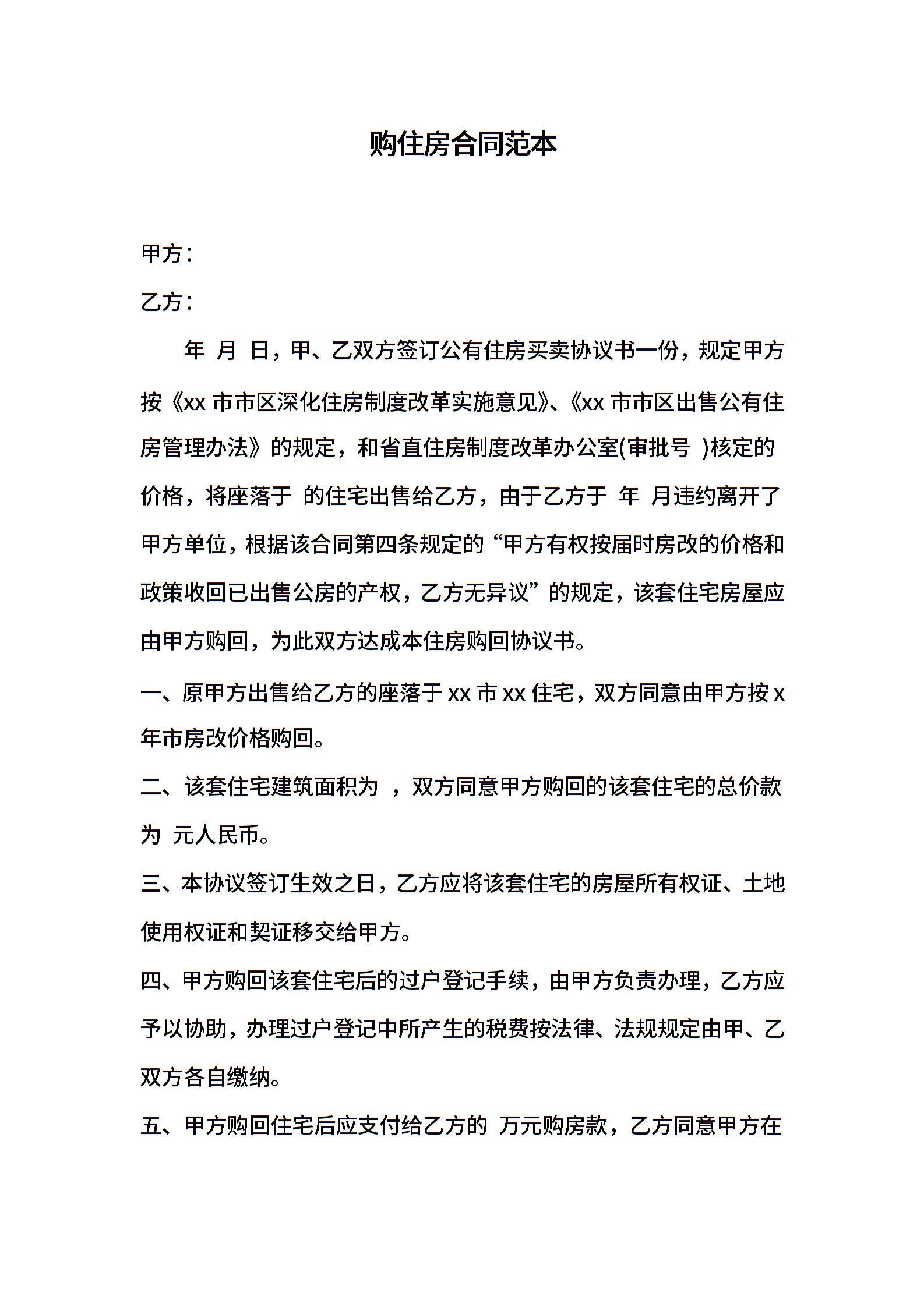 购住房合同范本