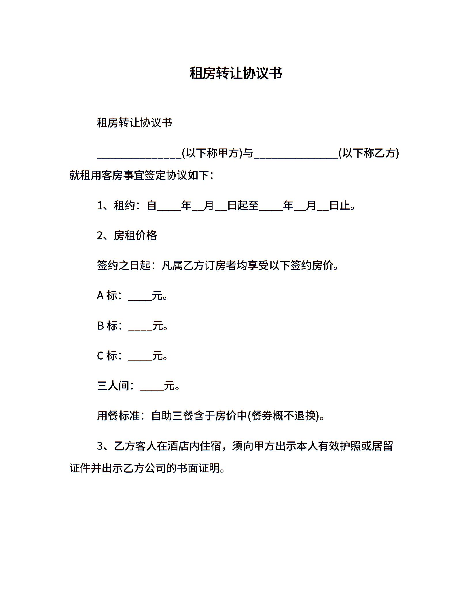 租房转让协议书