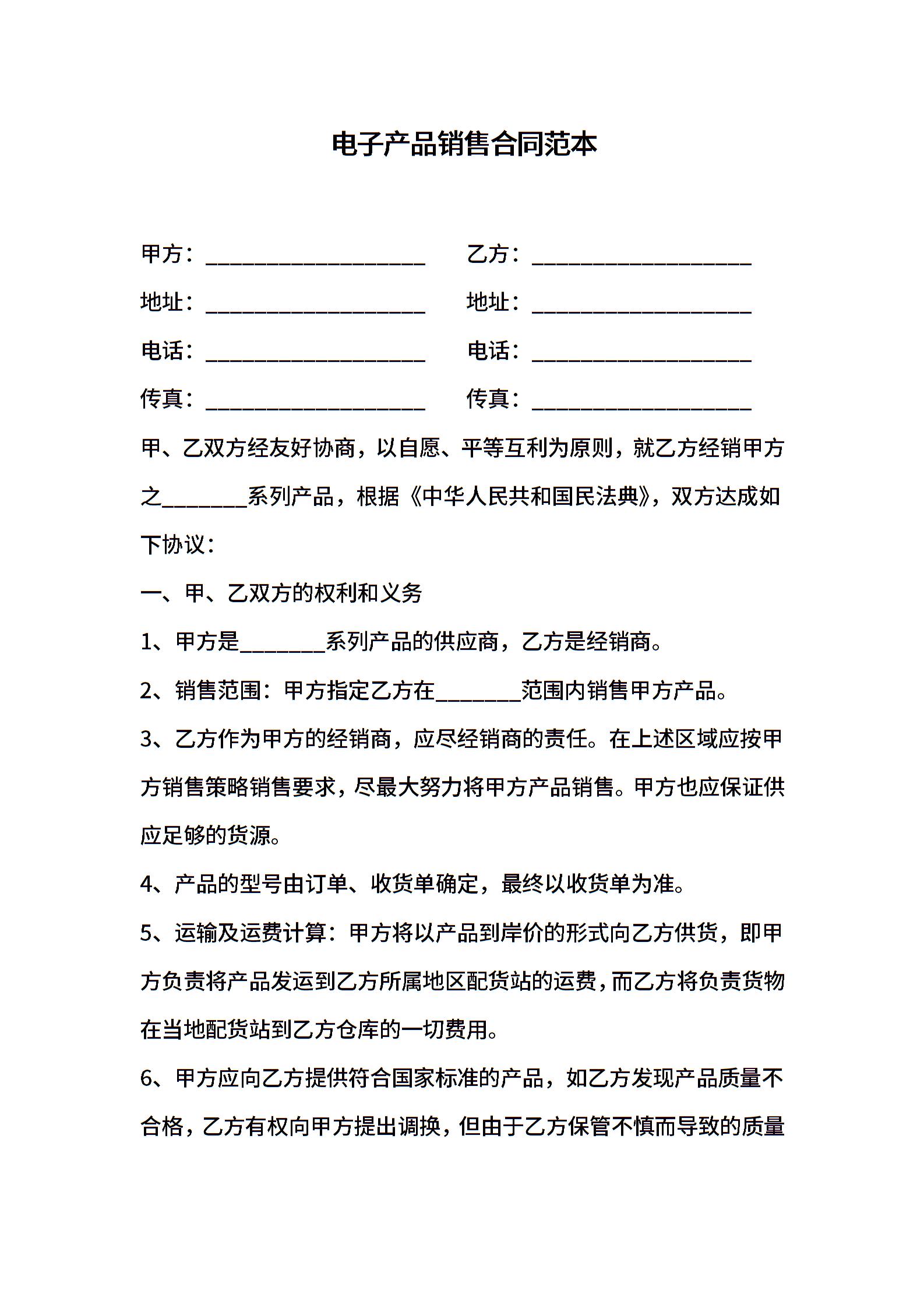 电子产品销售合同范本