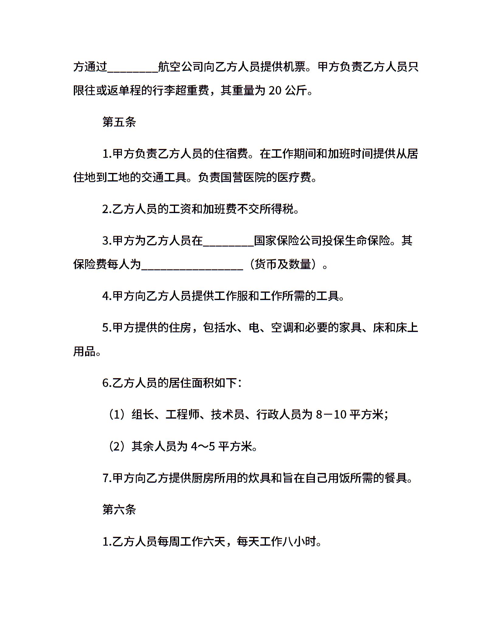 国际劳务合同(五)