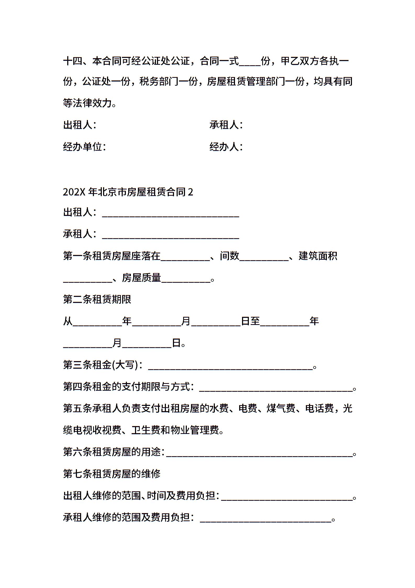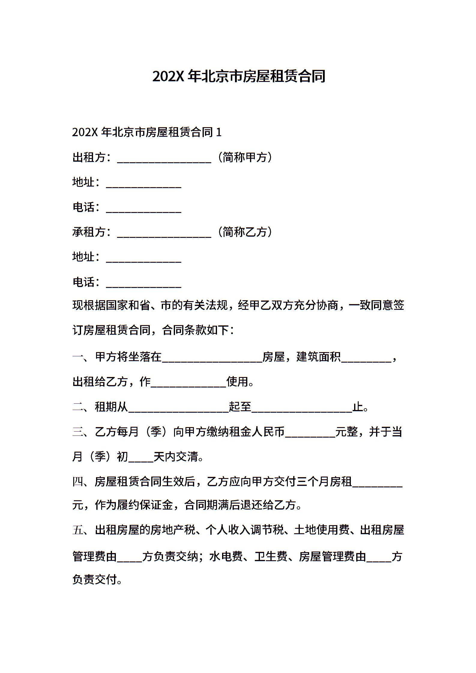 202X年北京市房屋租赁合同