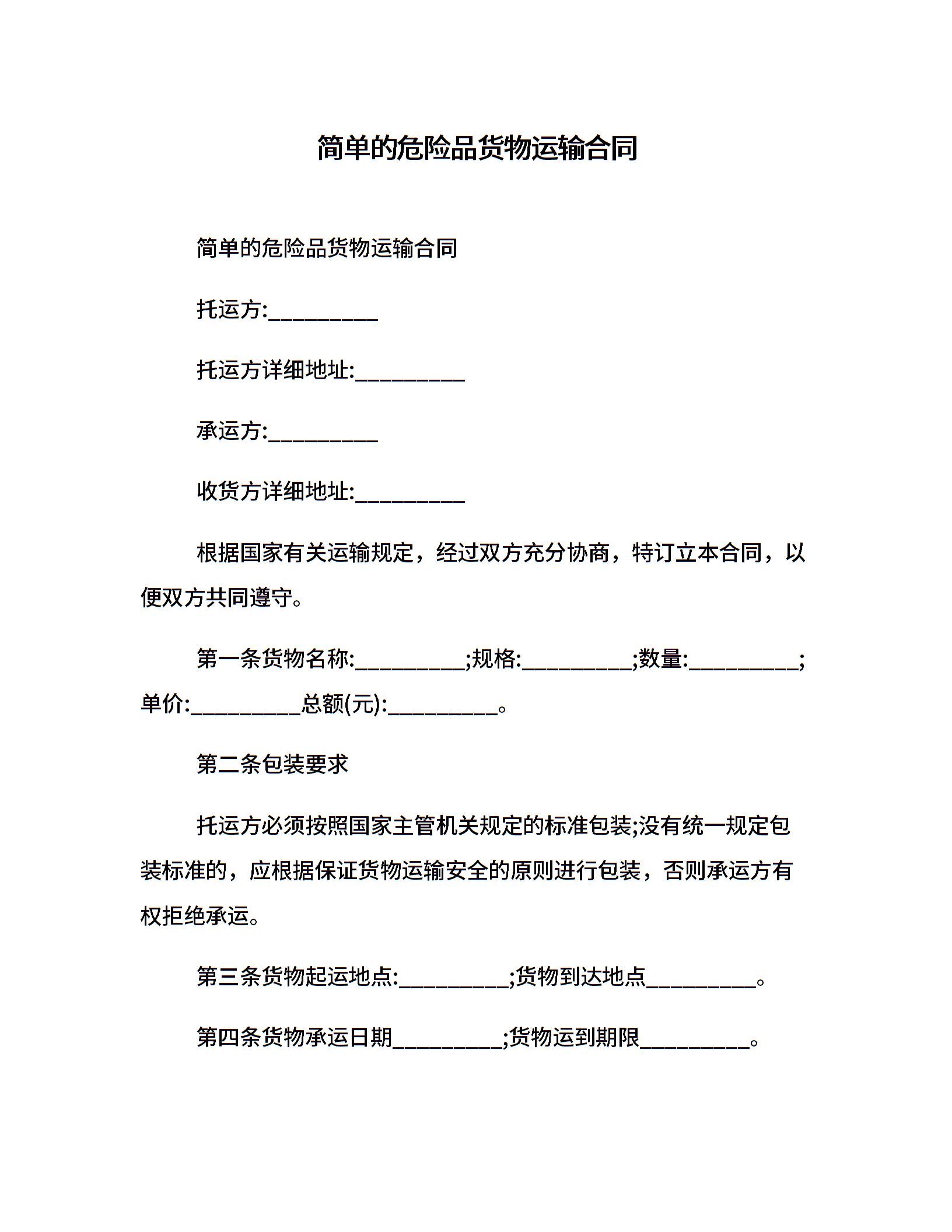 简单的危险品货物运输合同