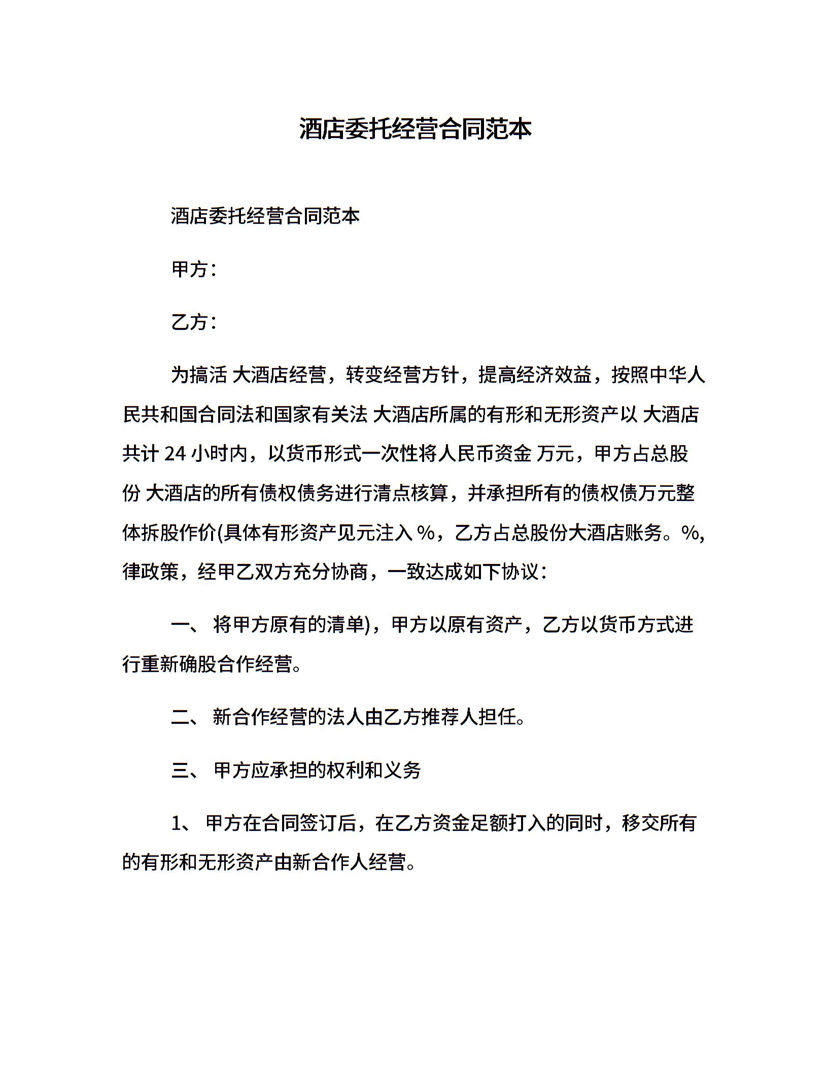 酒店委托经营合同范本