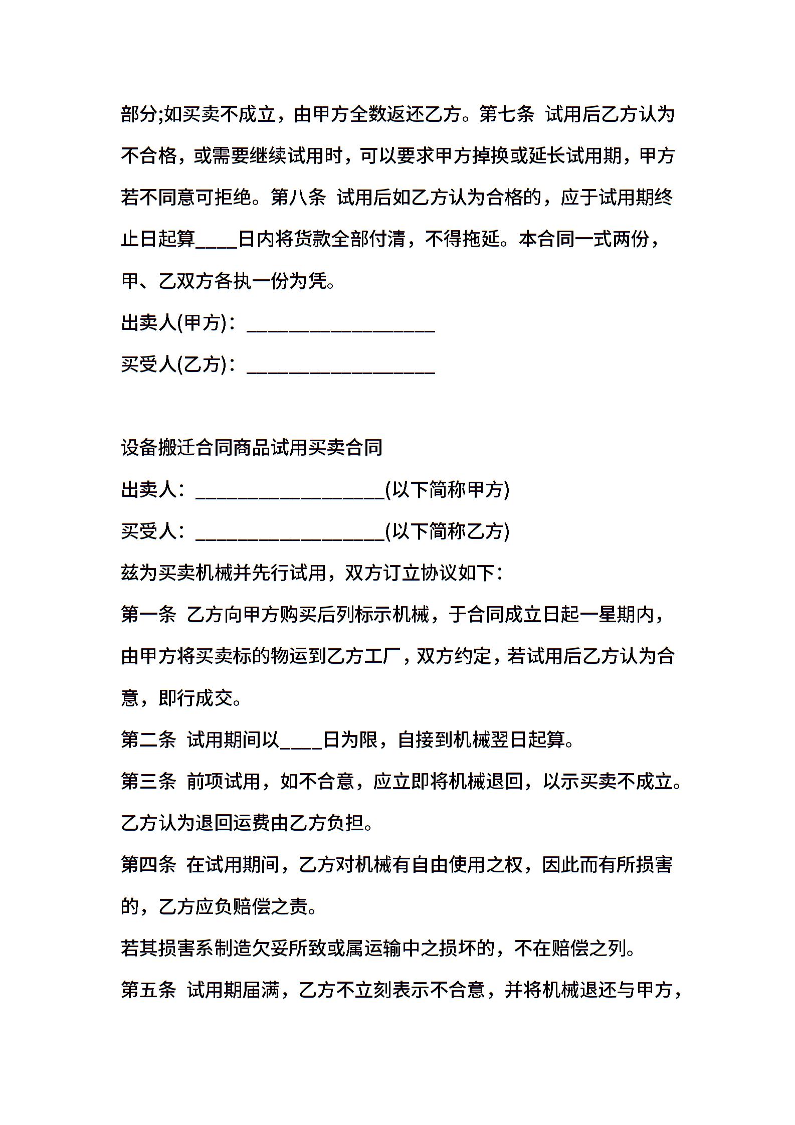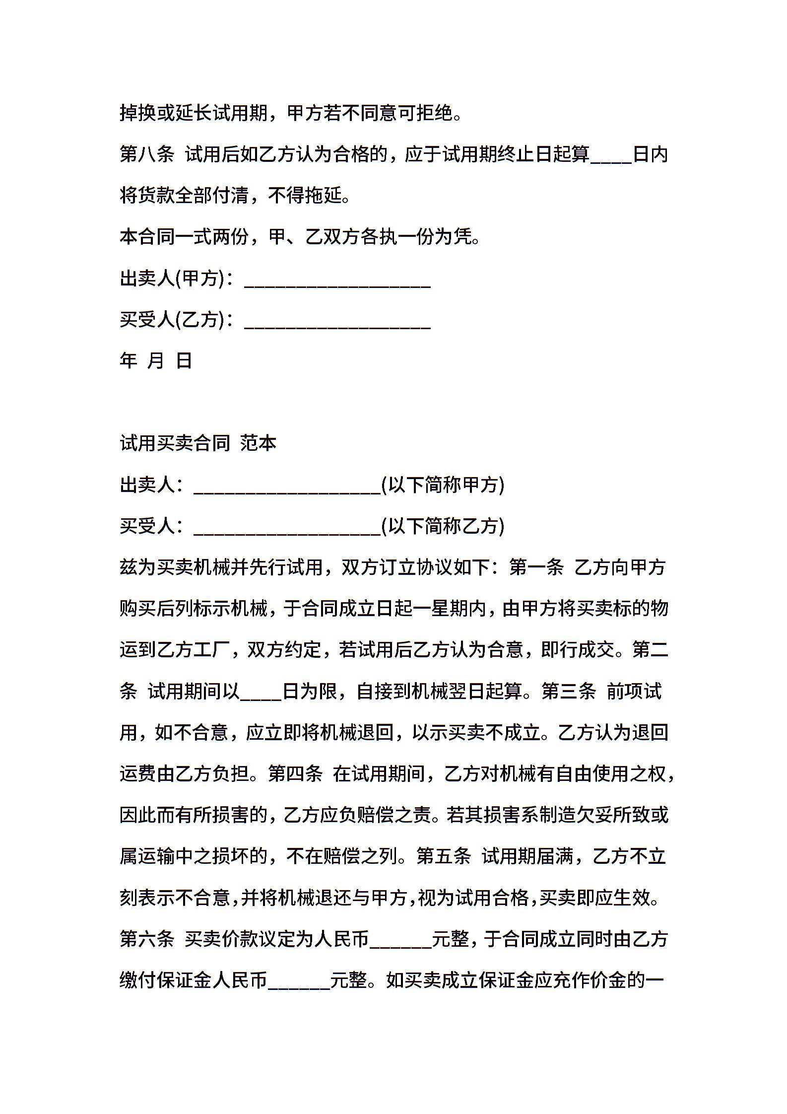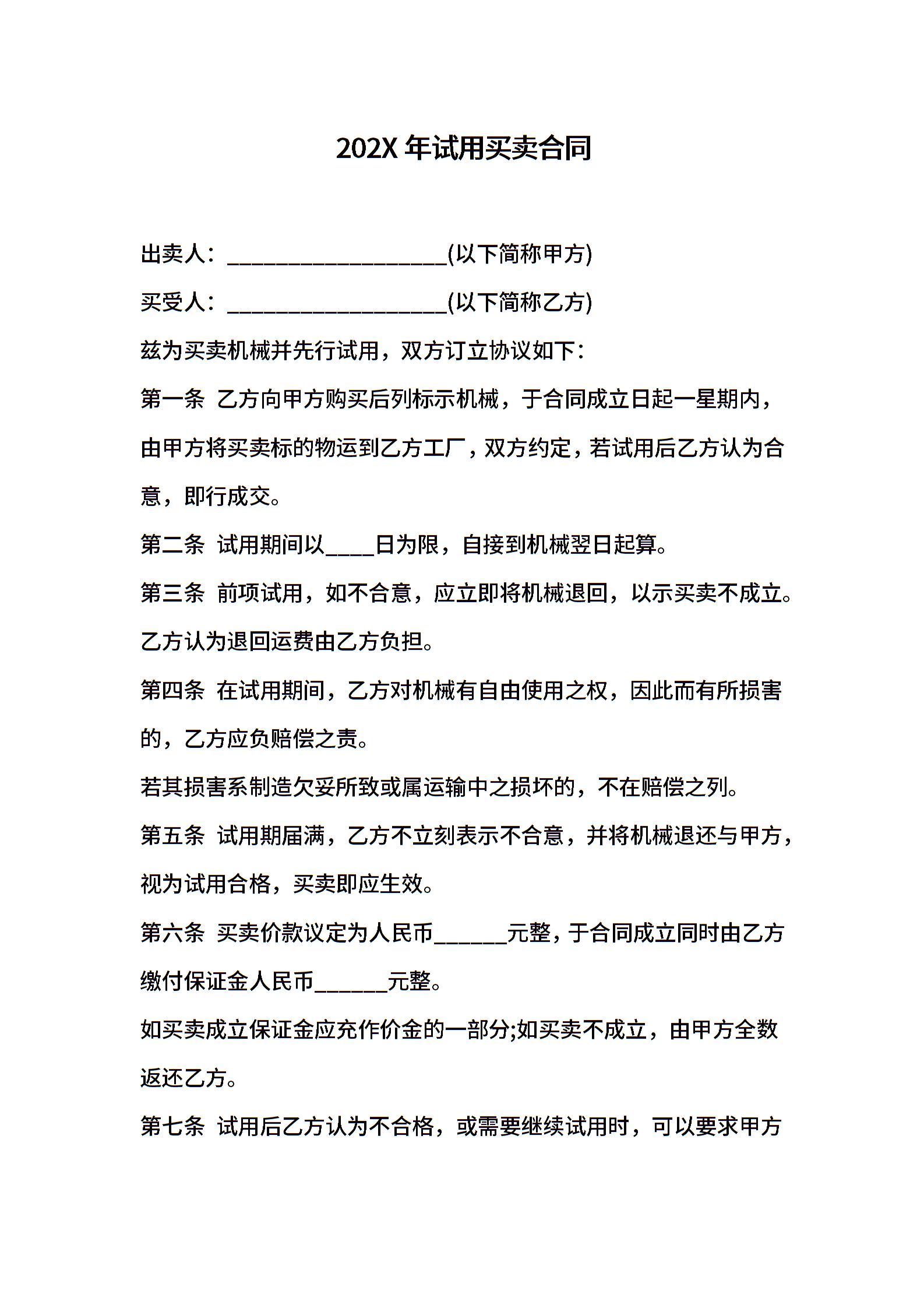 202X年试用买卖合同