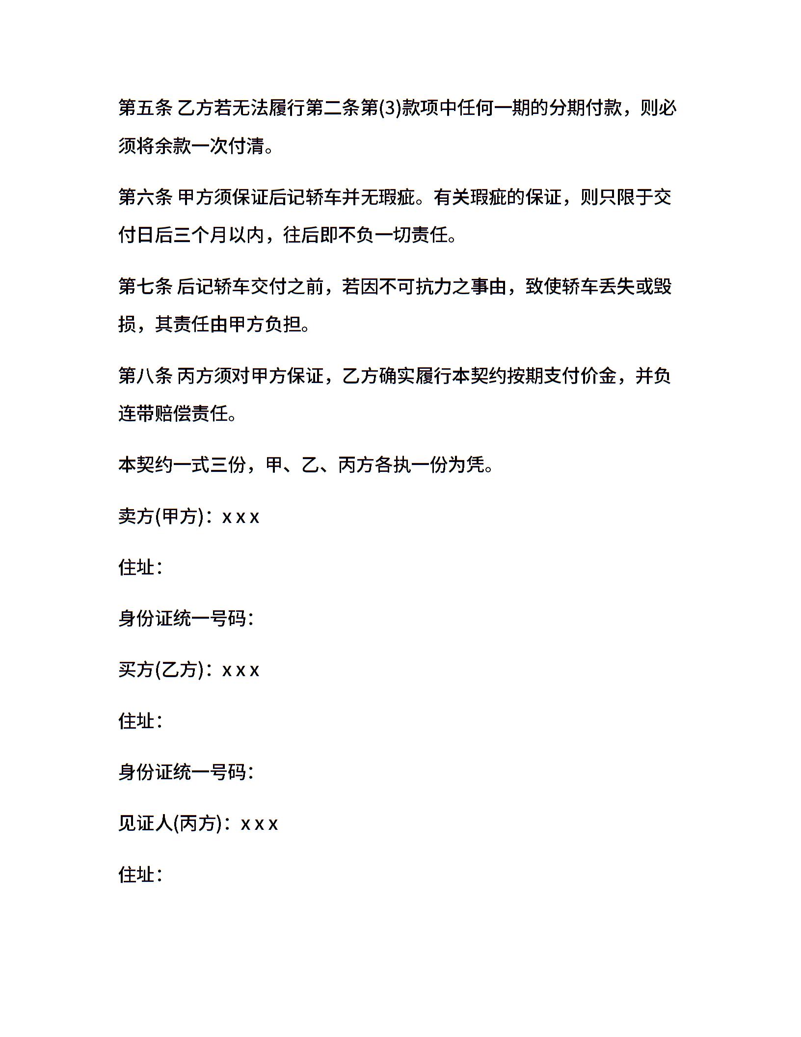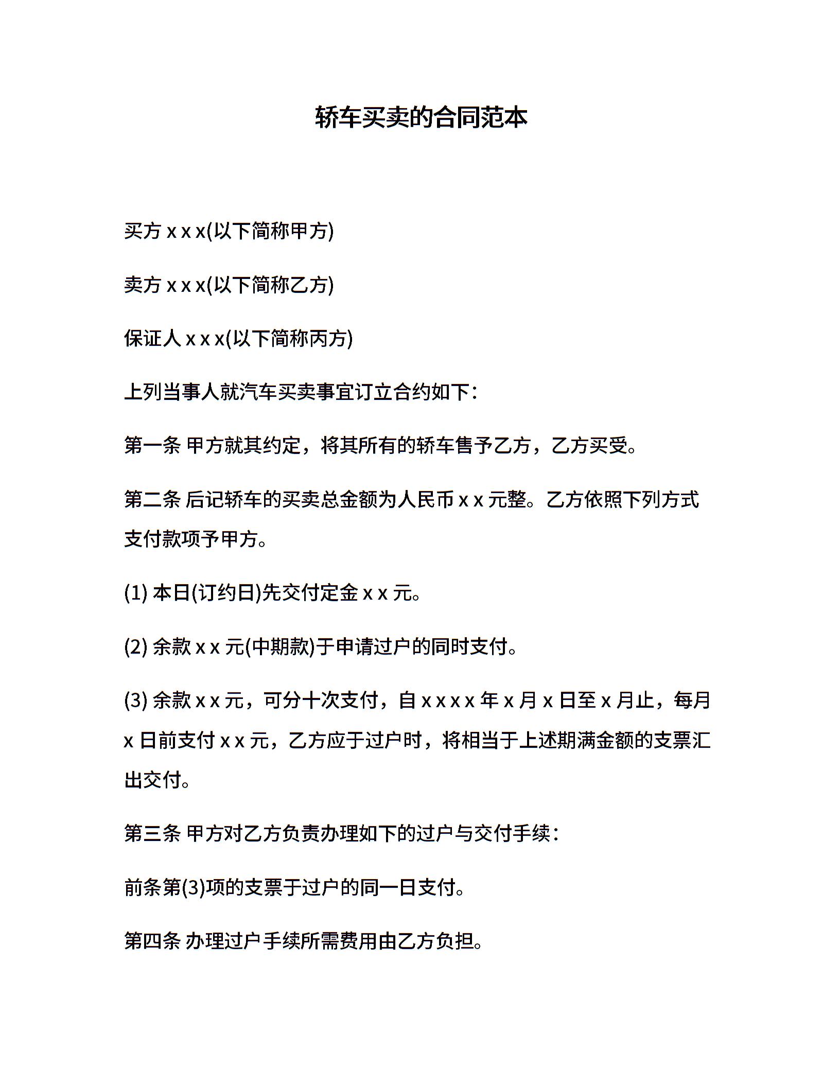 轿车买卖的合同范本