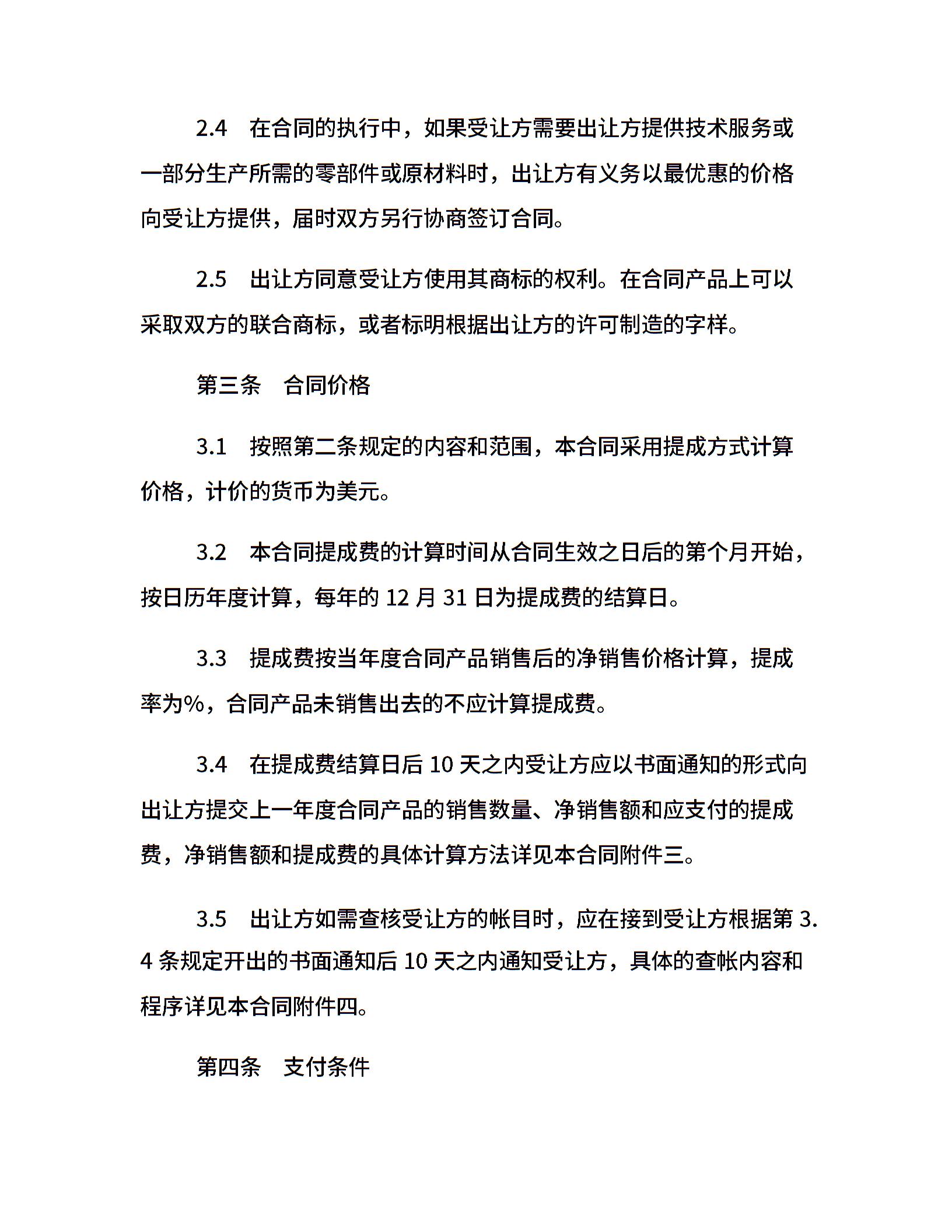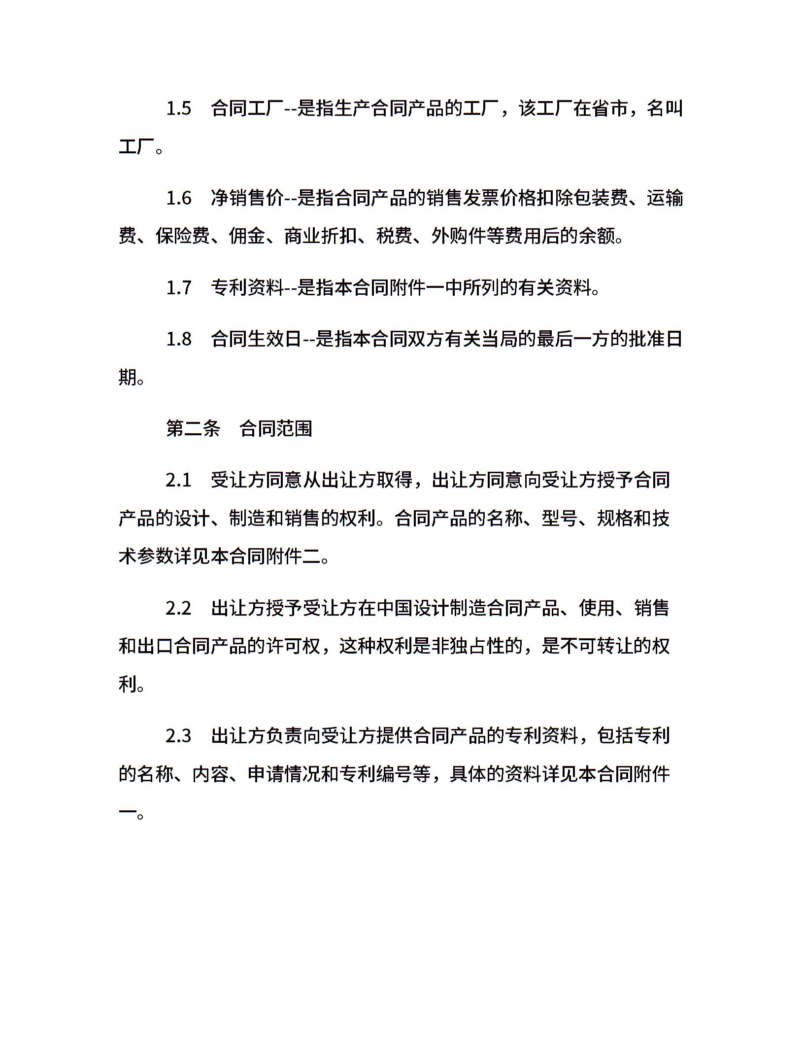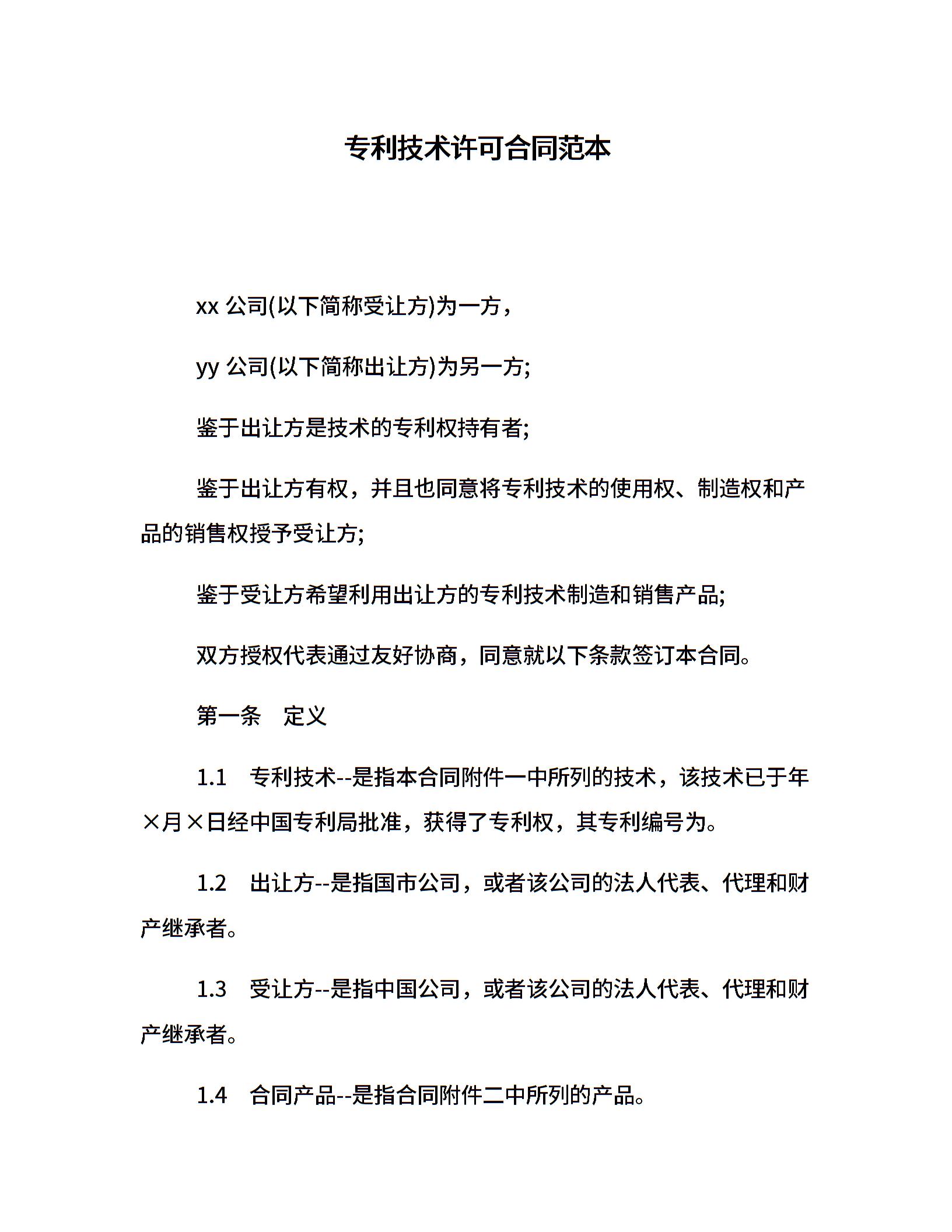 专利技术许可合同范本