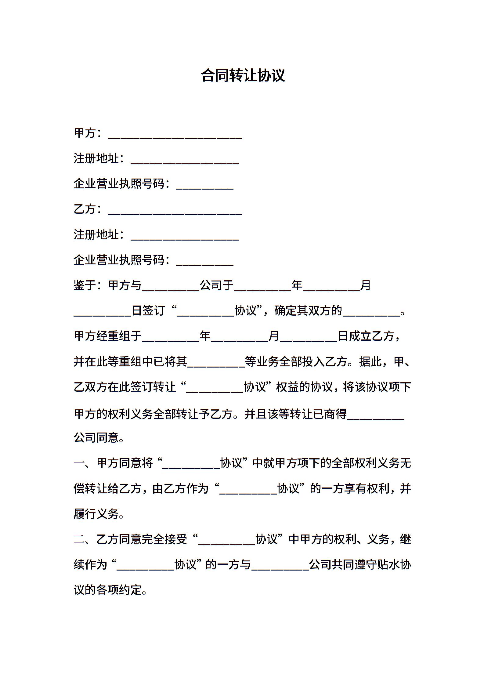 当前位置:量子办公 > 合同模板 > 转让合同 >