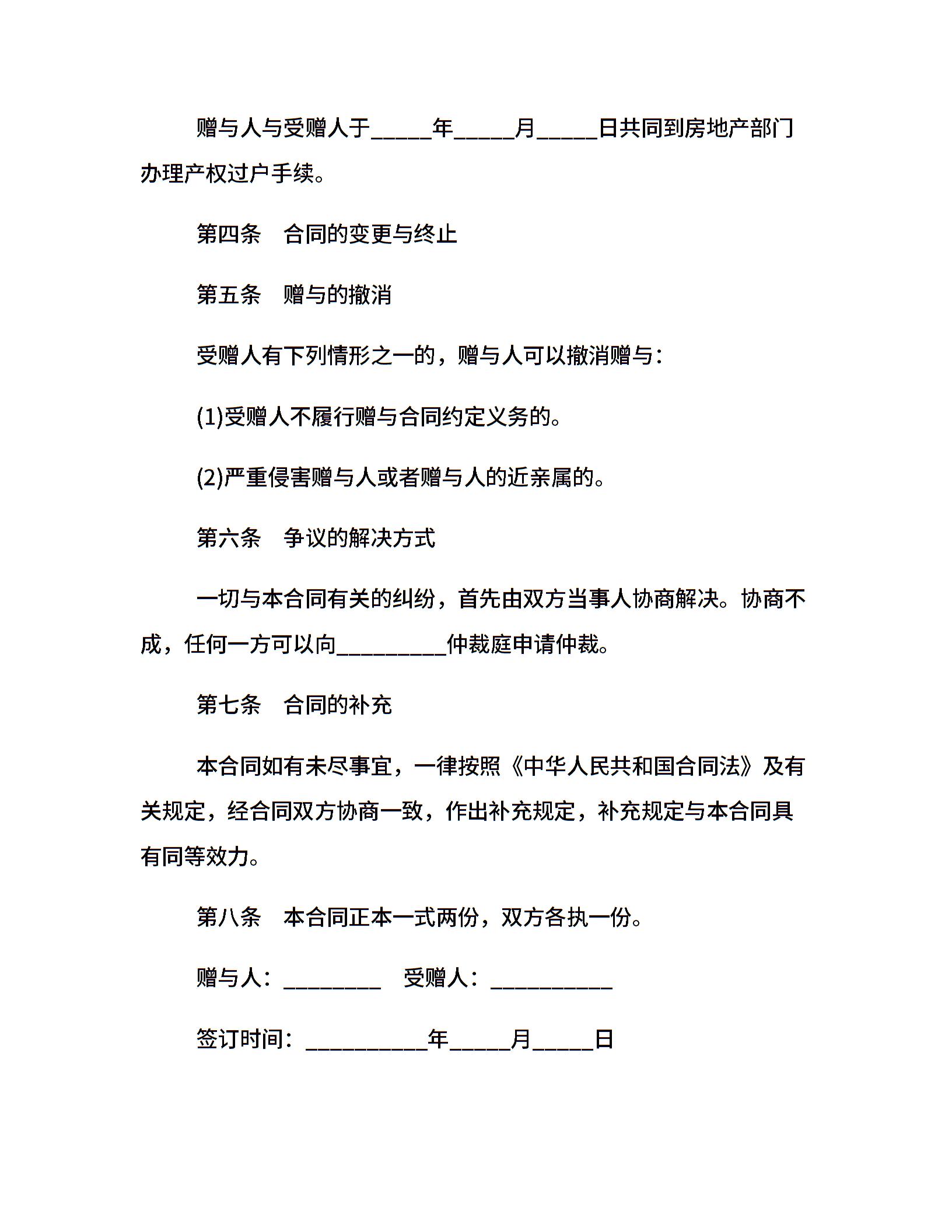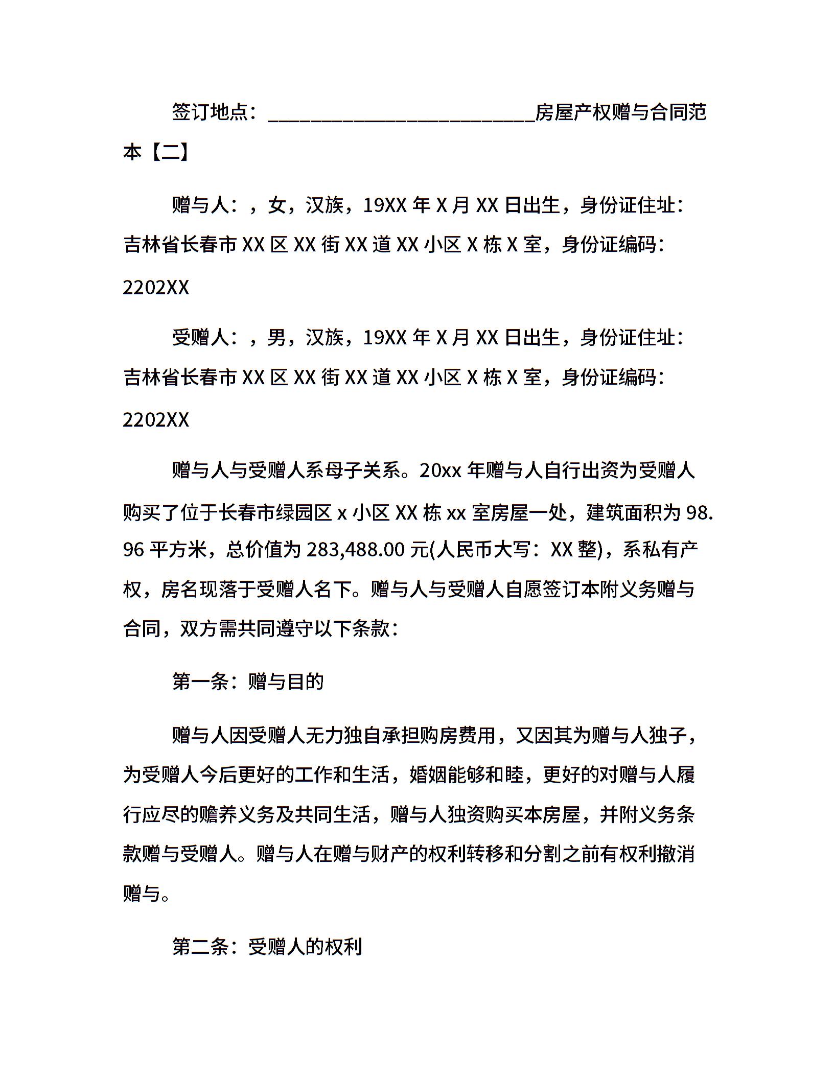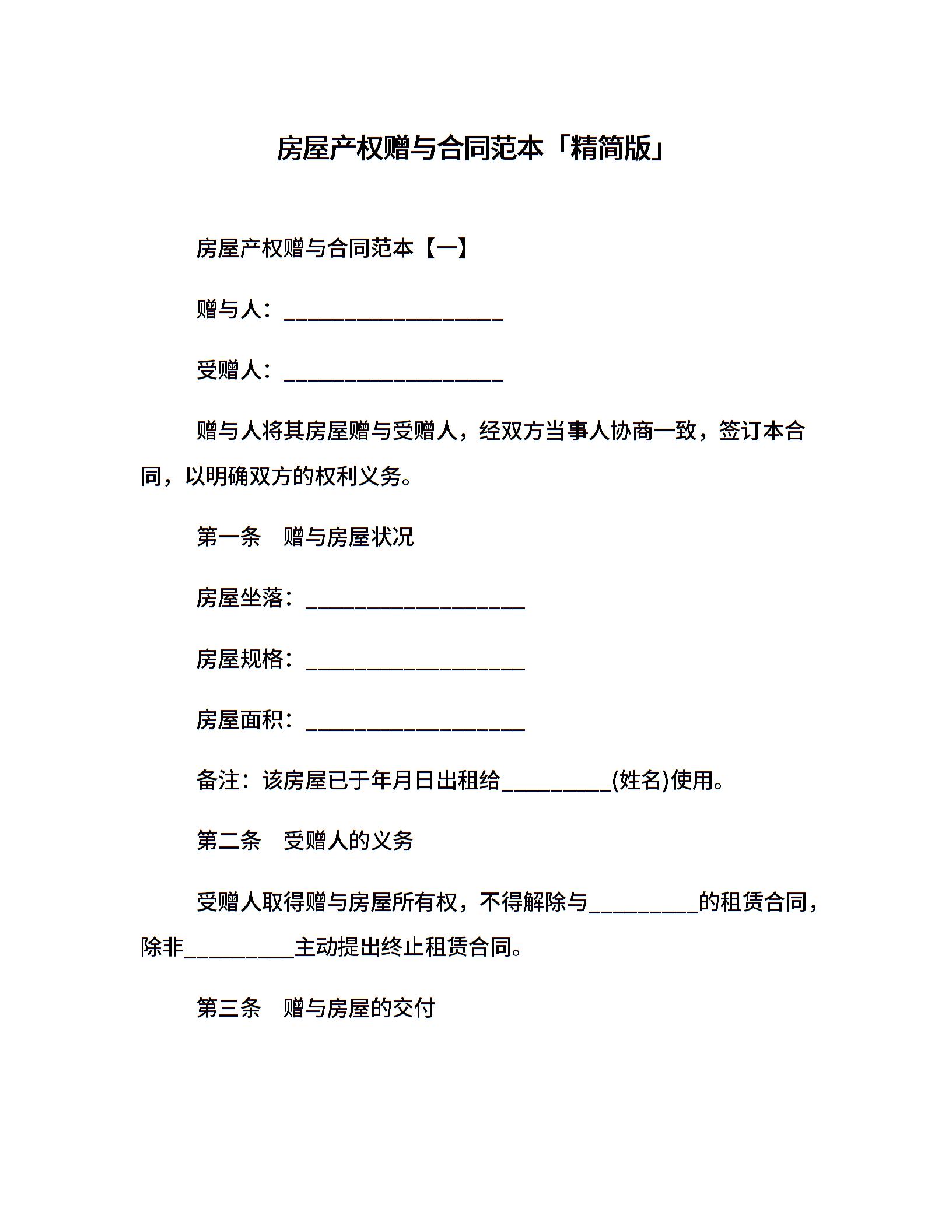 房屋产权赠与合同范本「精简版」