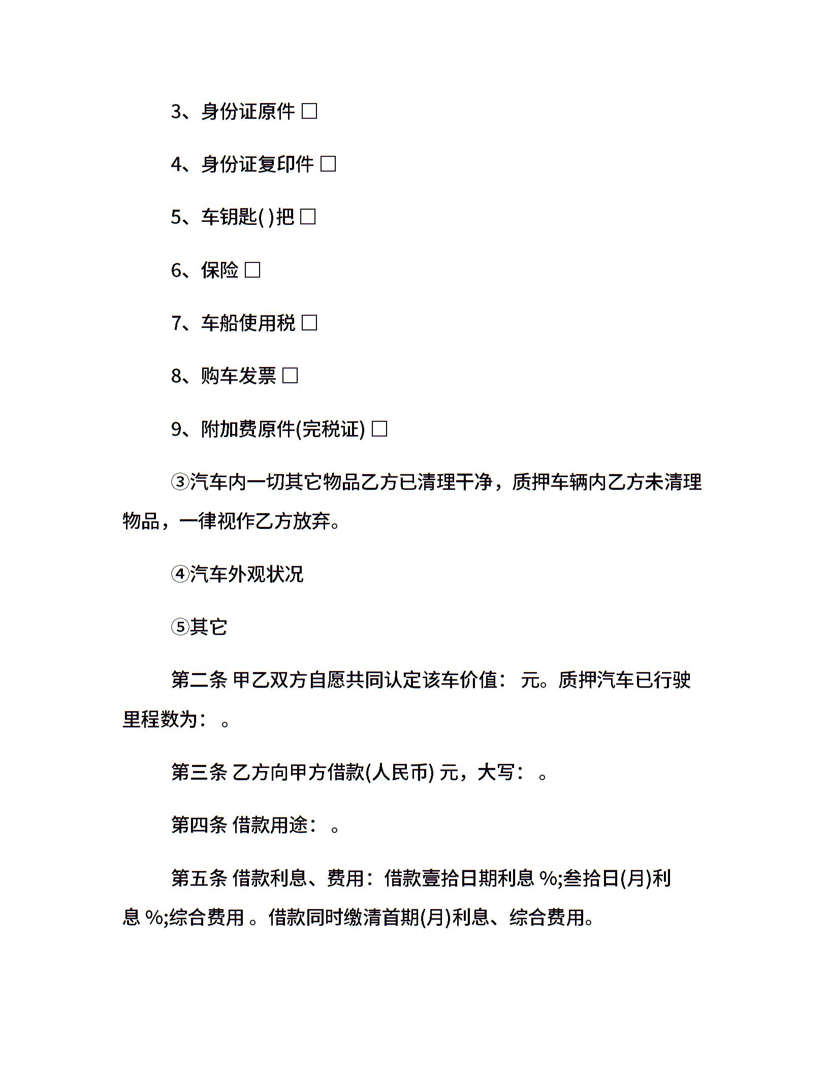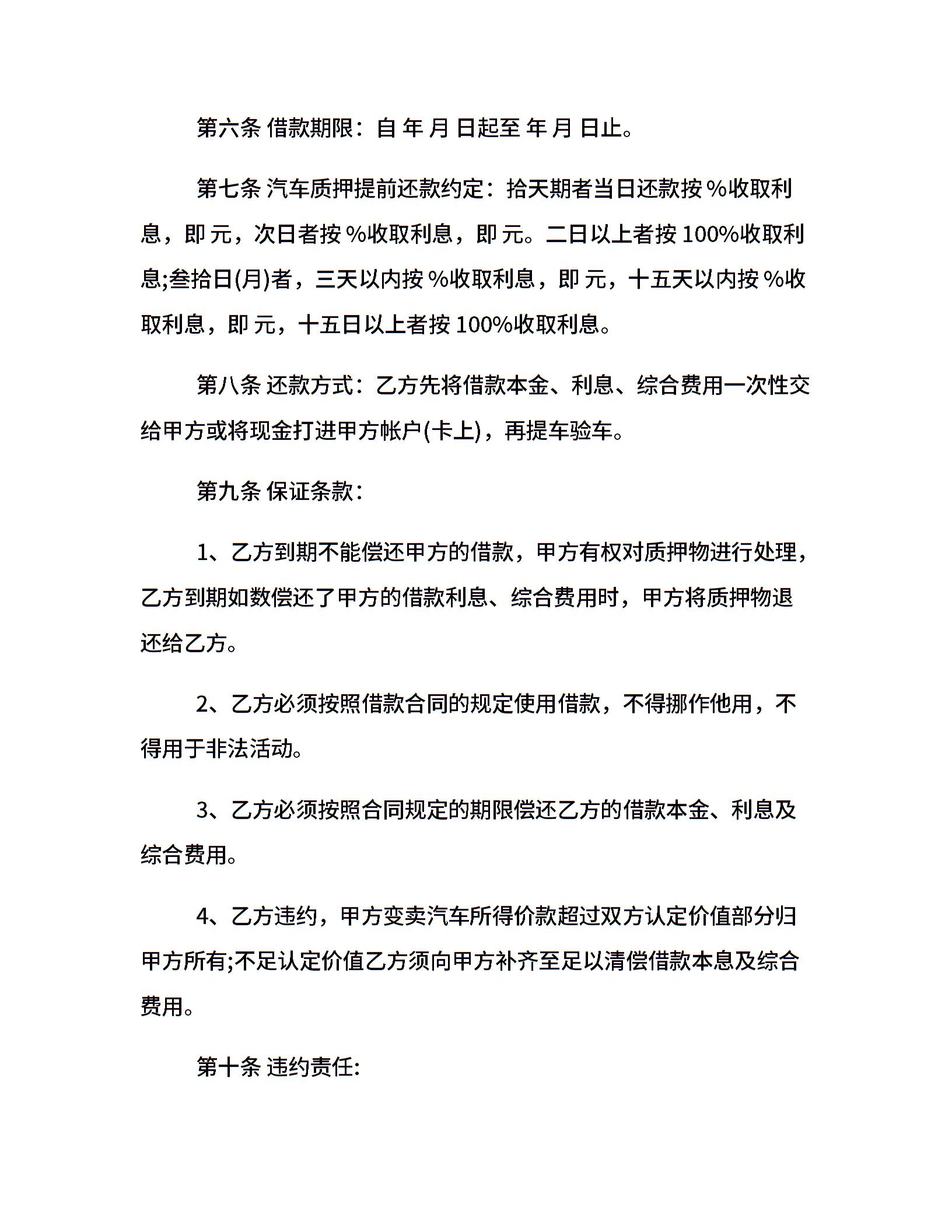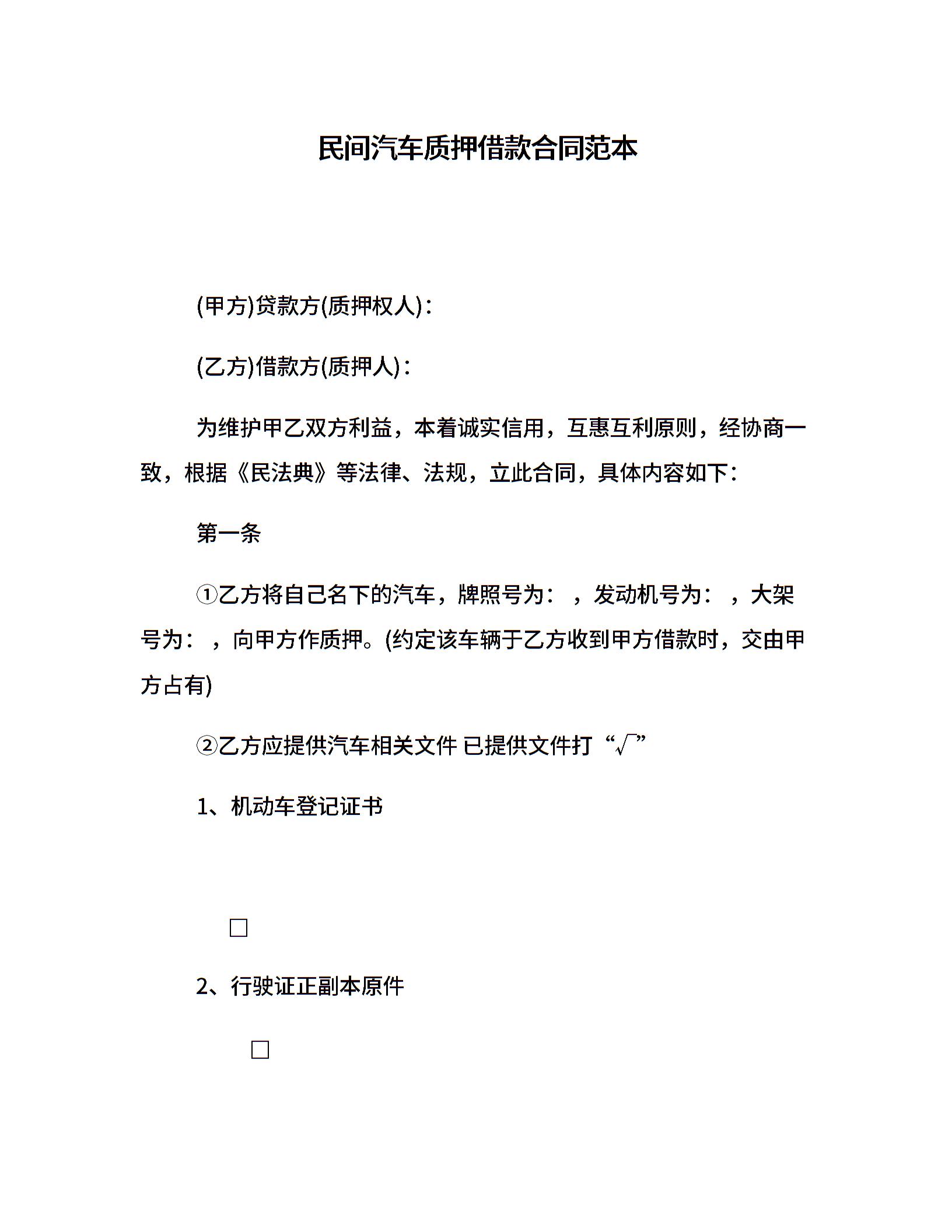 民间汽车质押借款合同范本
