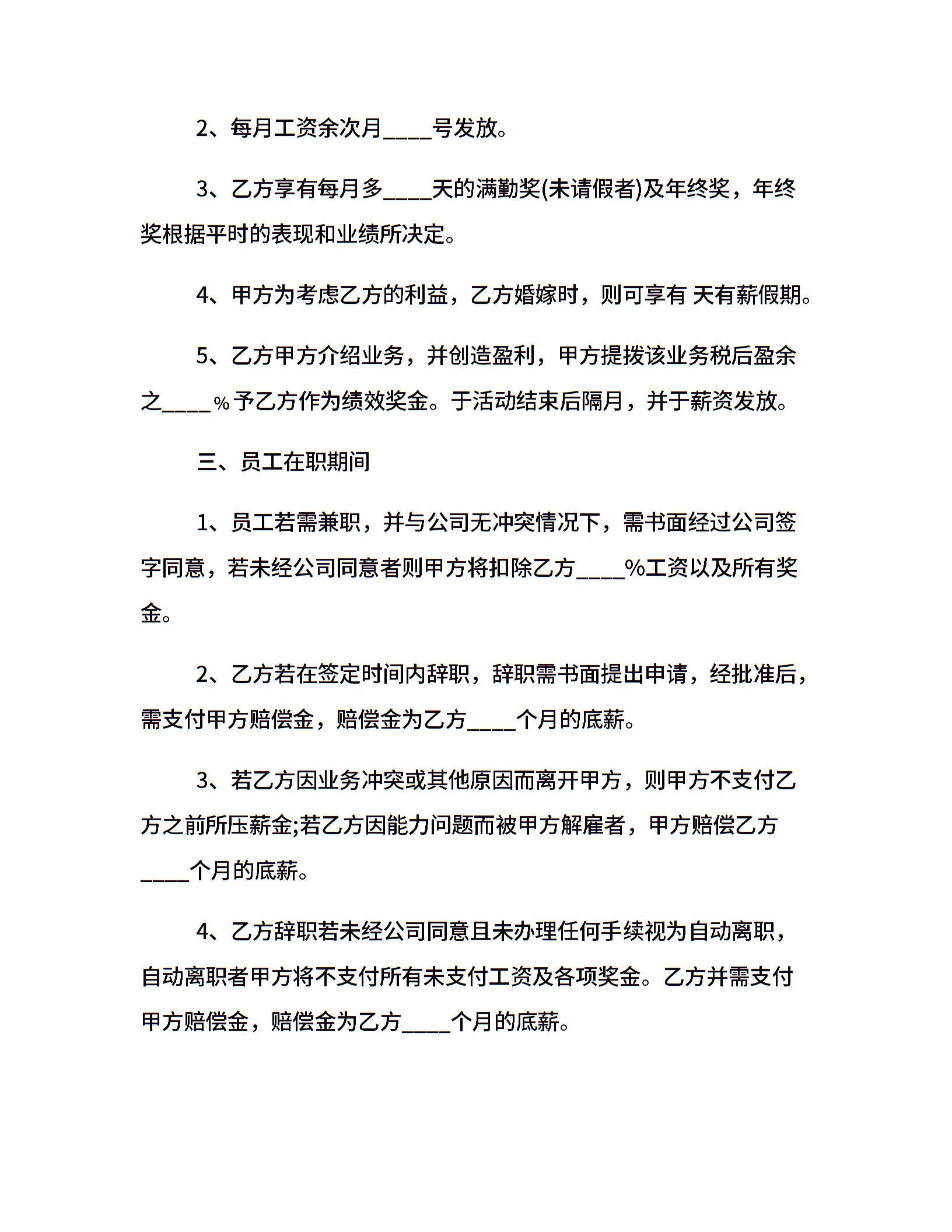 • 分类 聘用合同