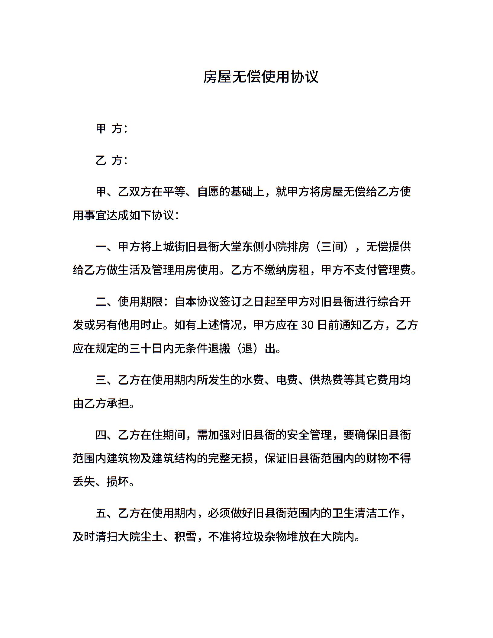 房屋无偿使用协议