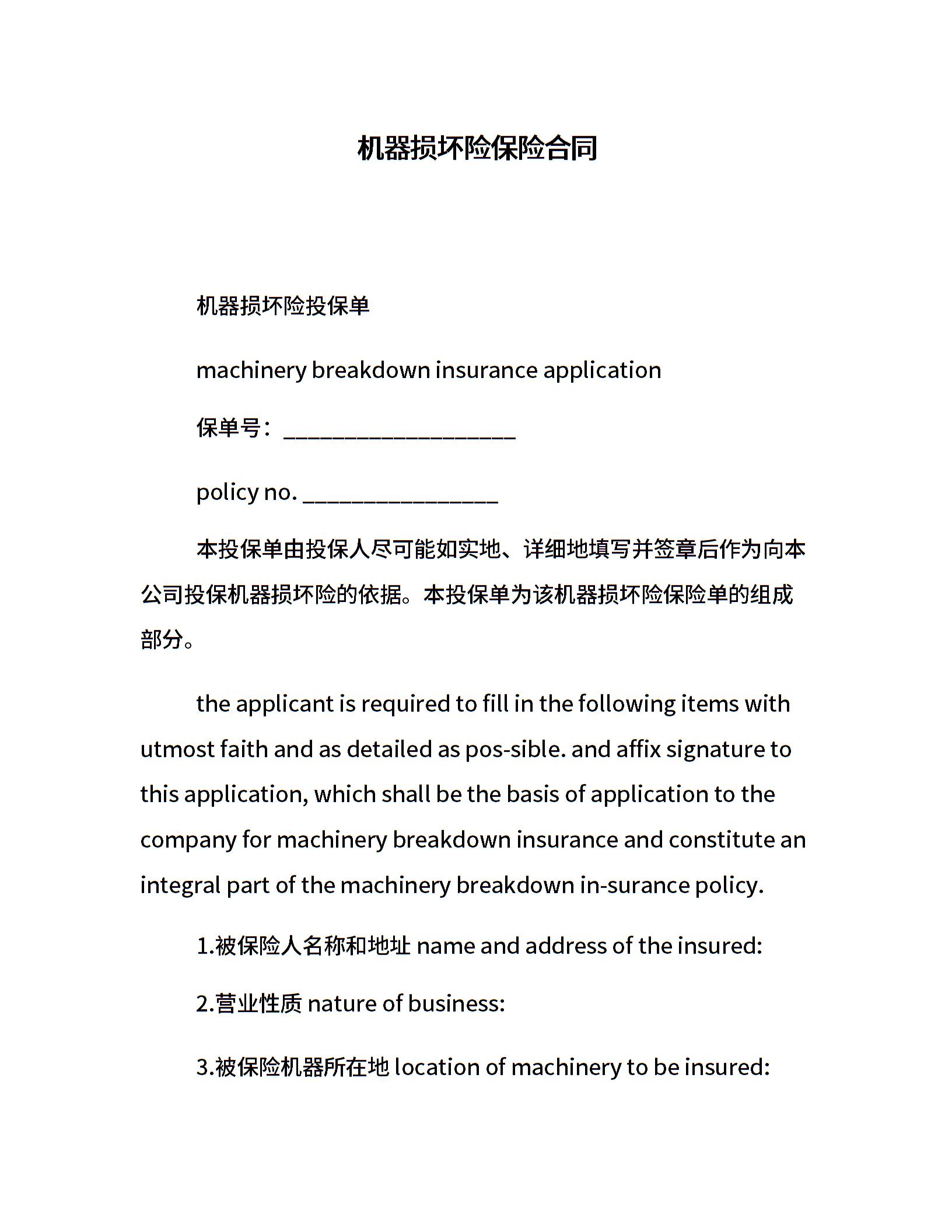 机器损坏险保险合同