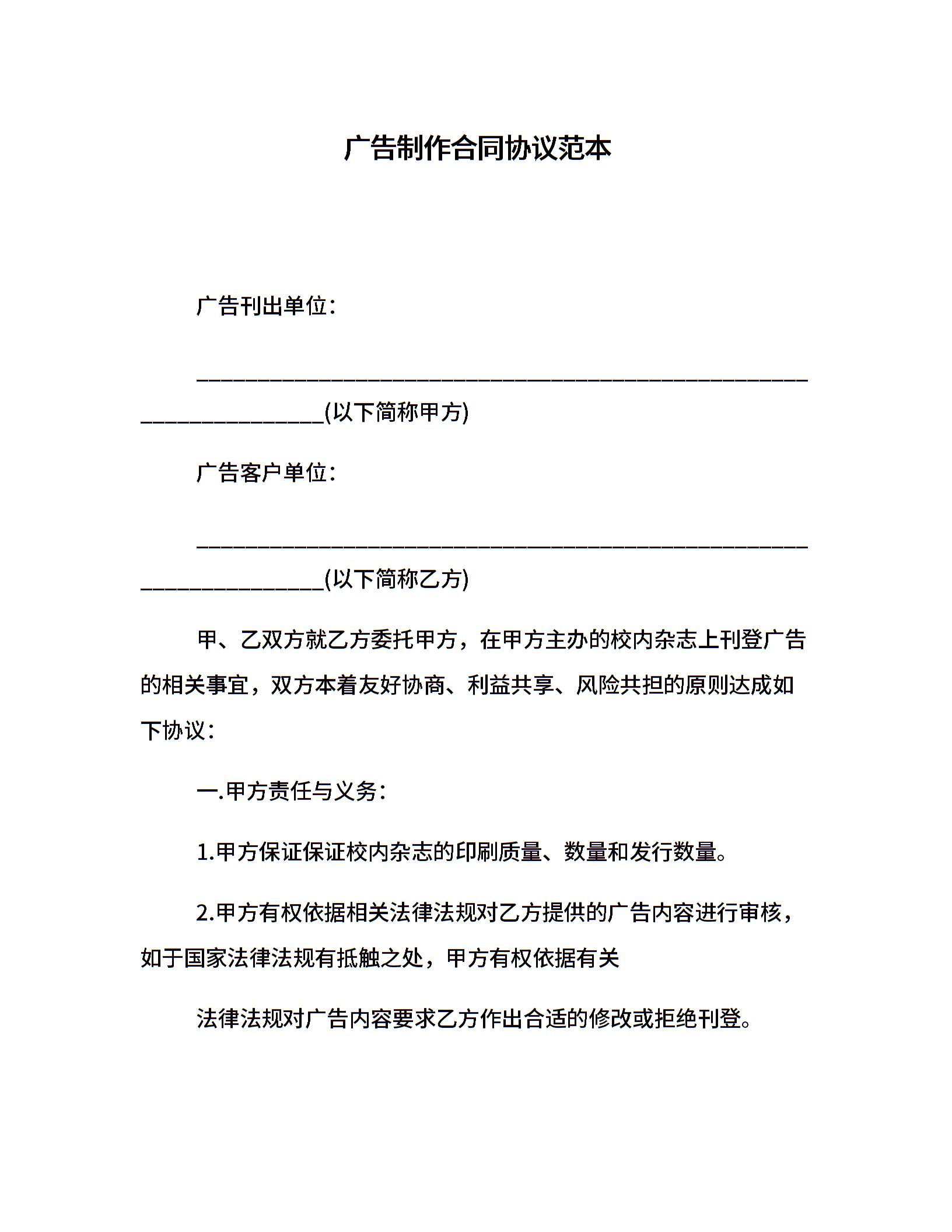 广告制作合同协议范本