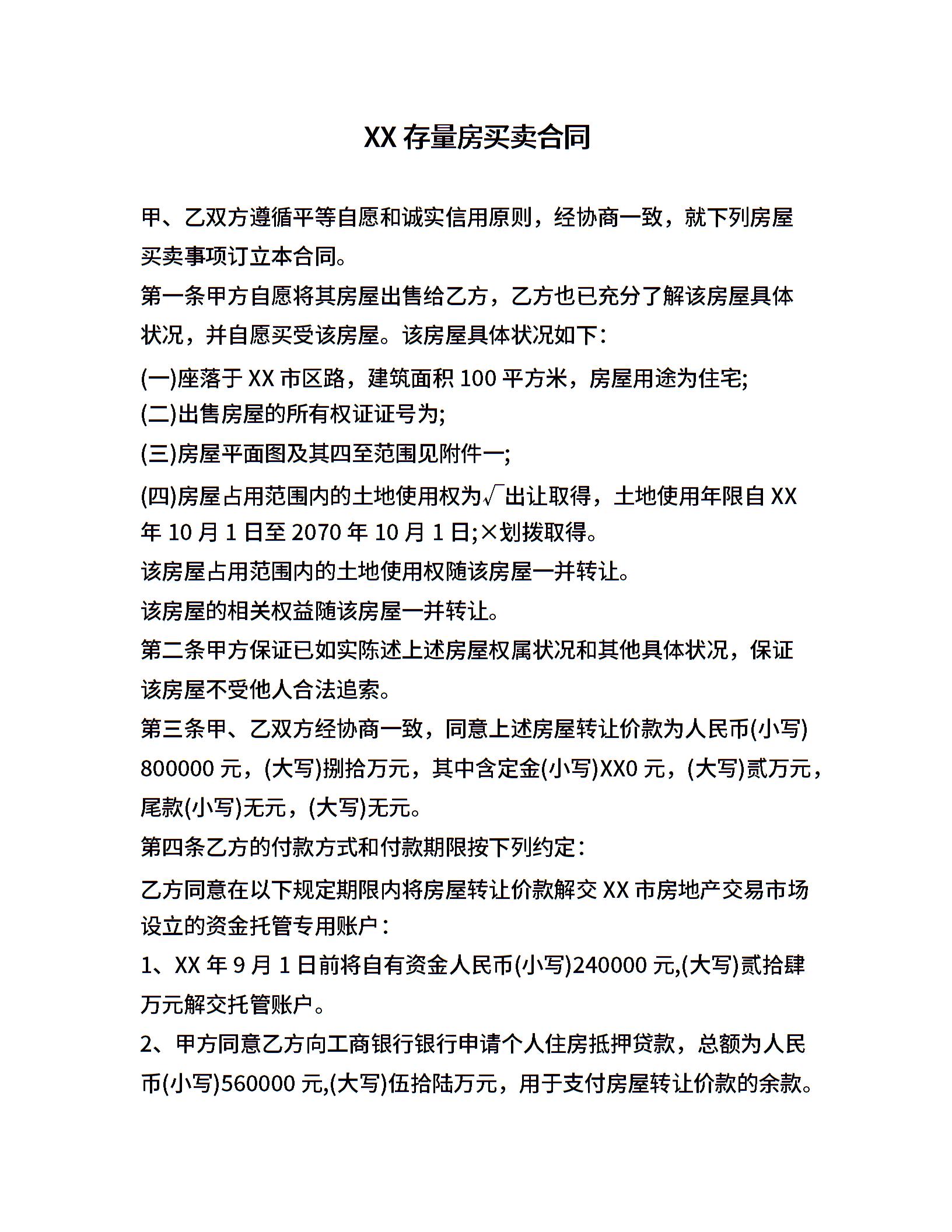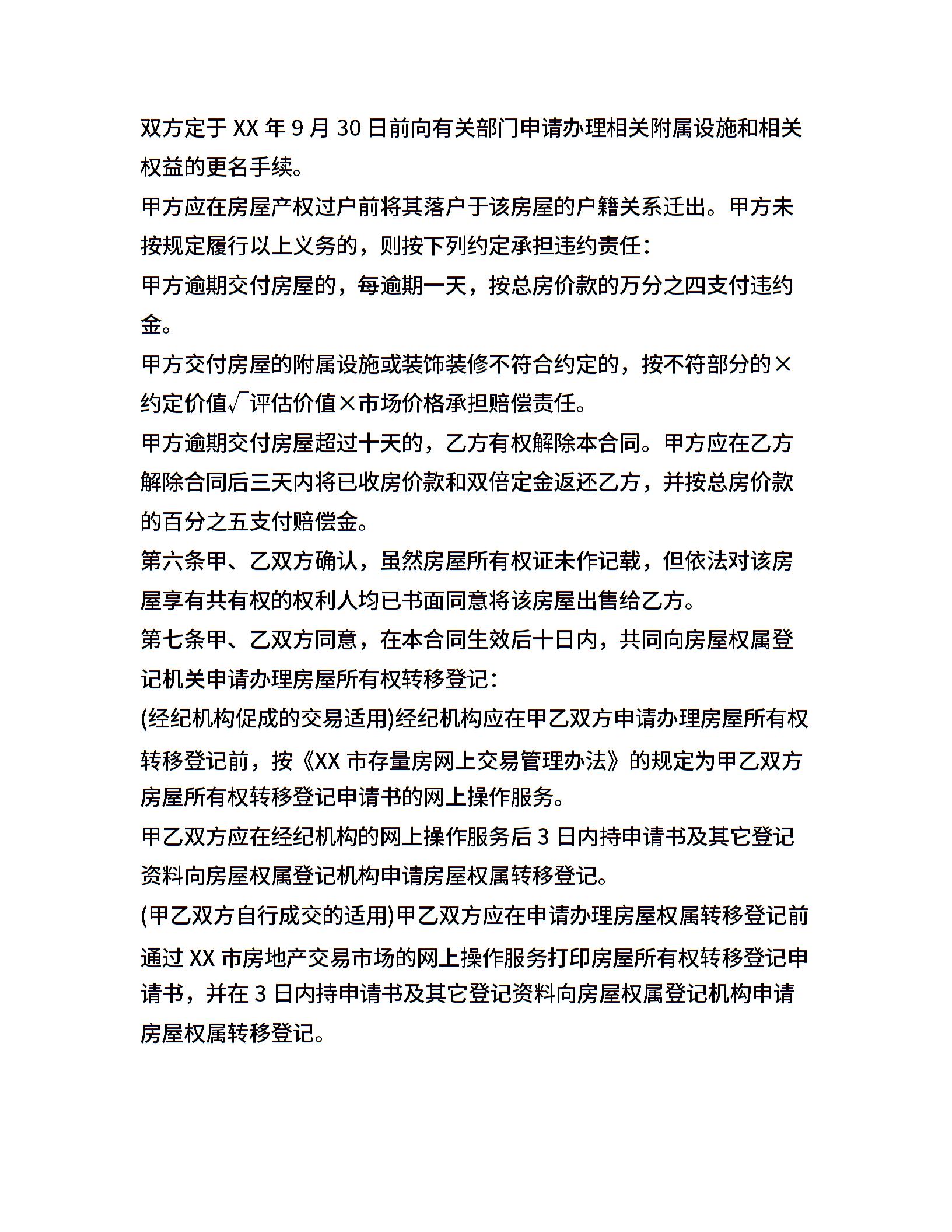 XX存量房买卖合同