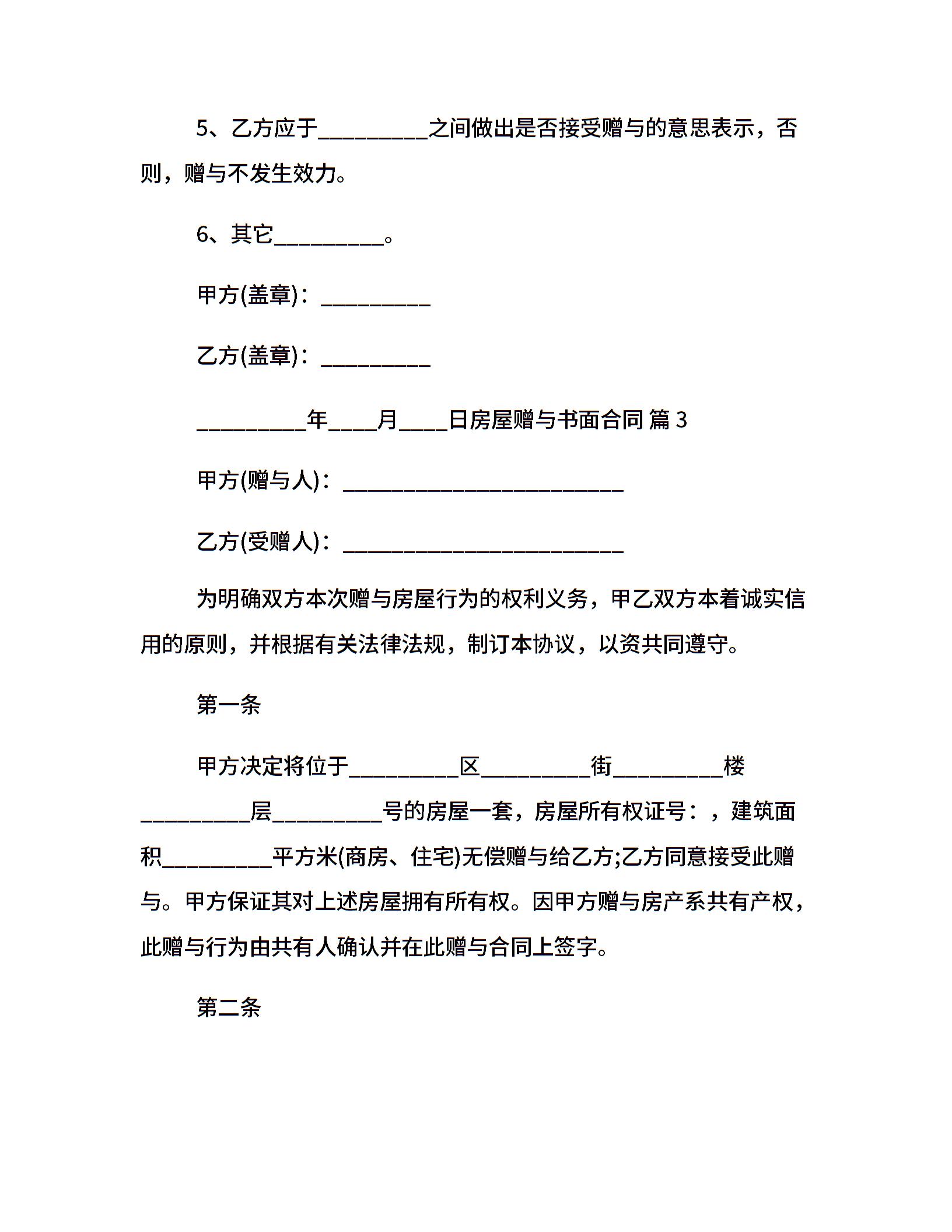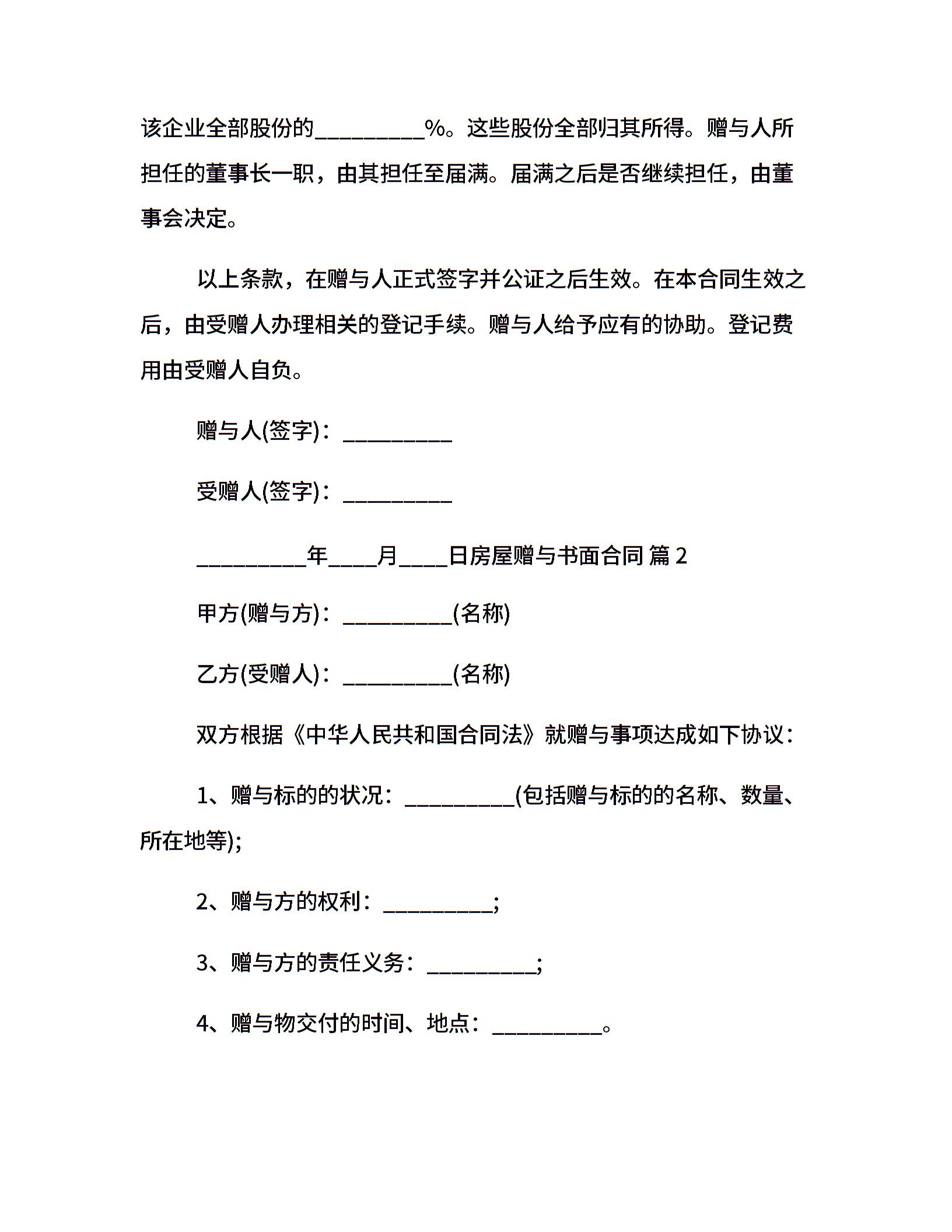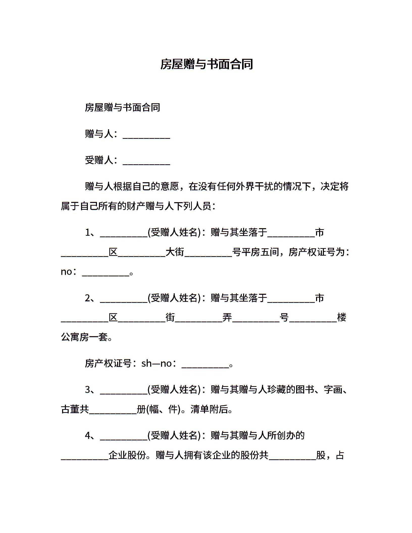 房屋赠与书面合同