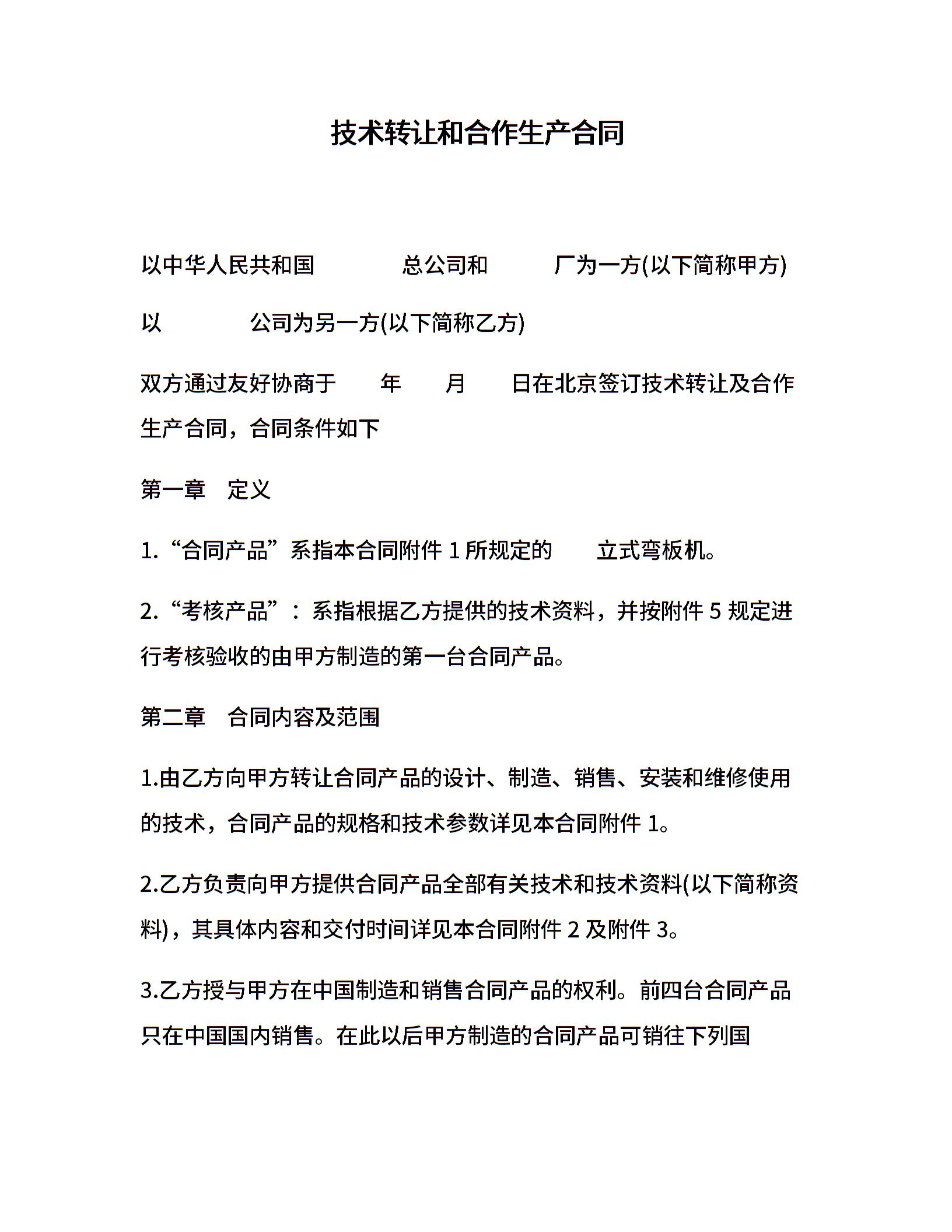 技术转让和合作生产合同