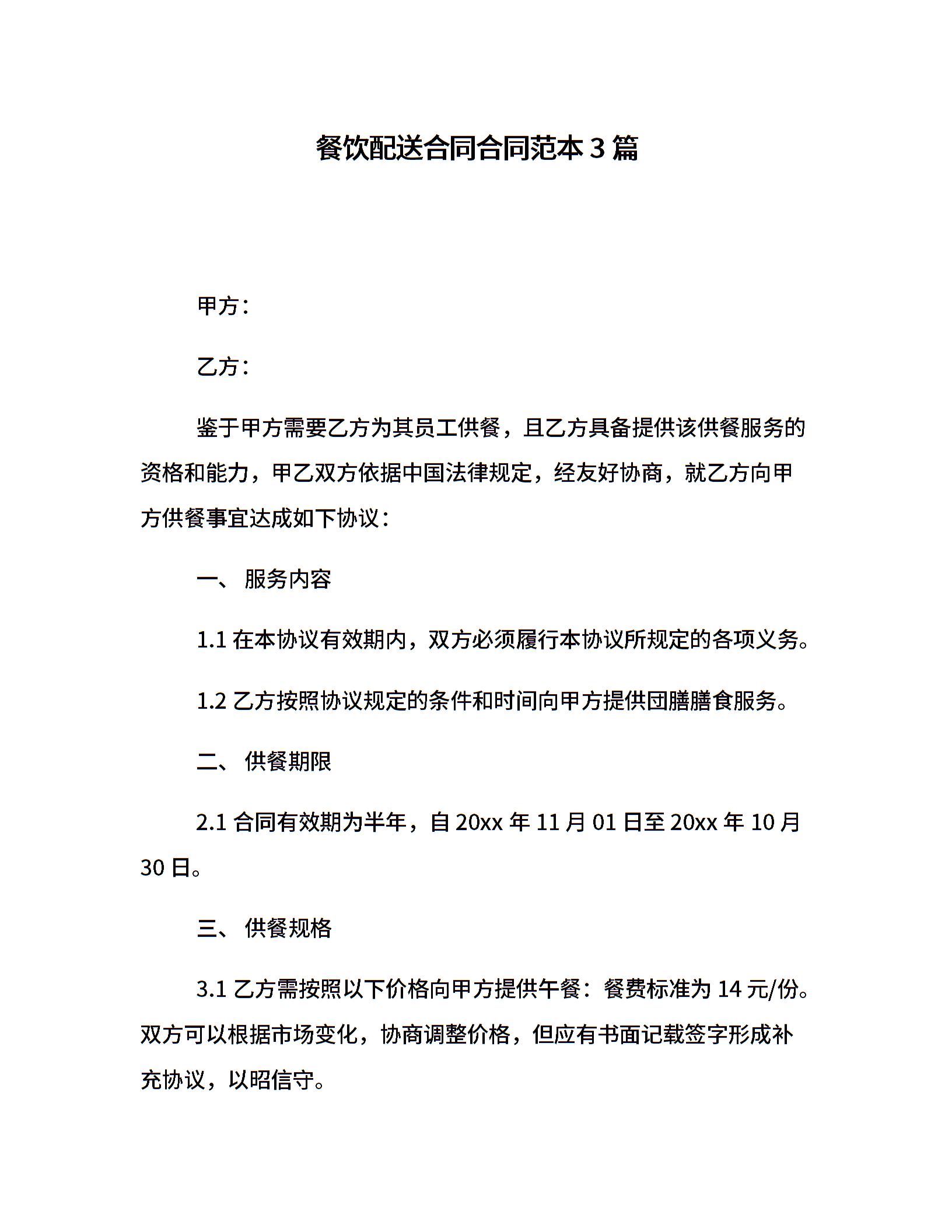 餐饮配送合同合同范本3篇