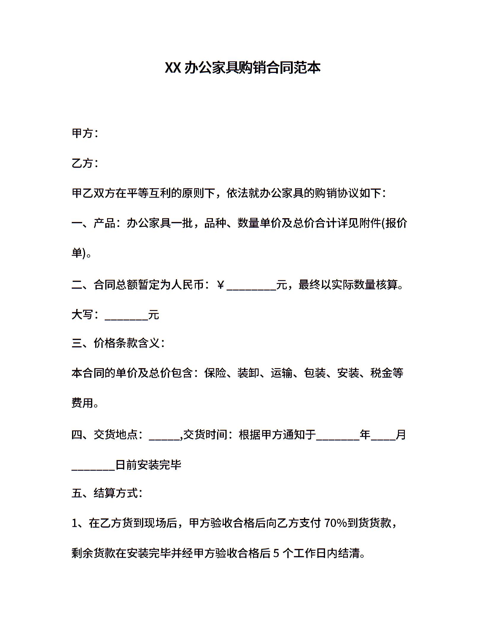 XX办公家具购销合同范本