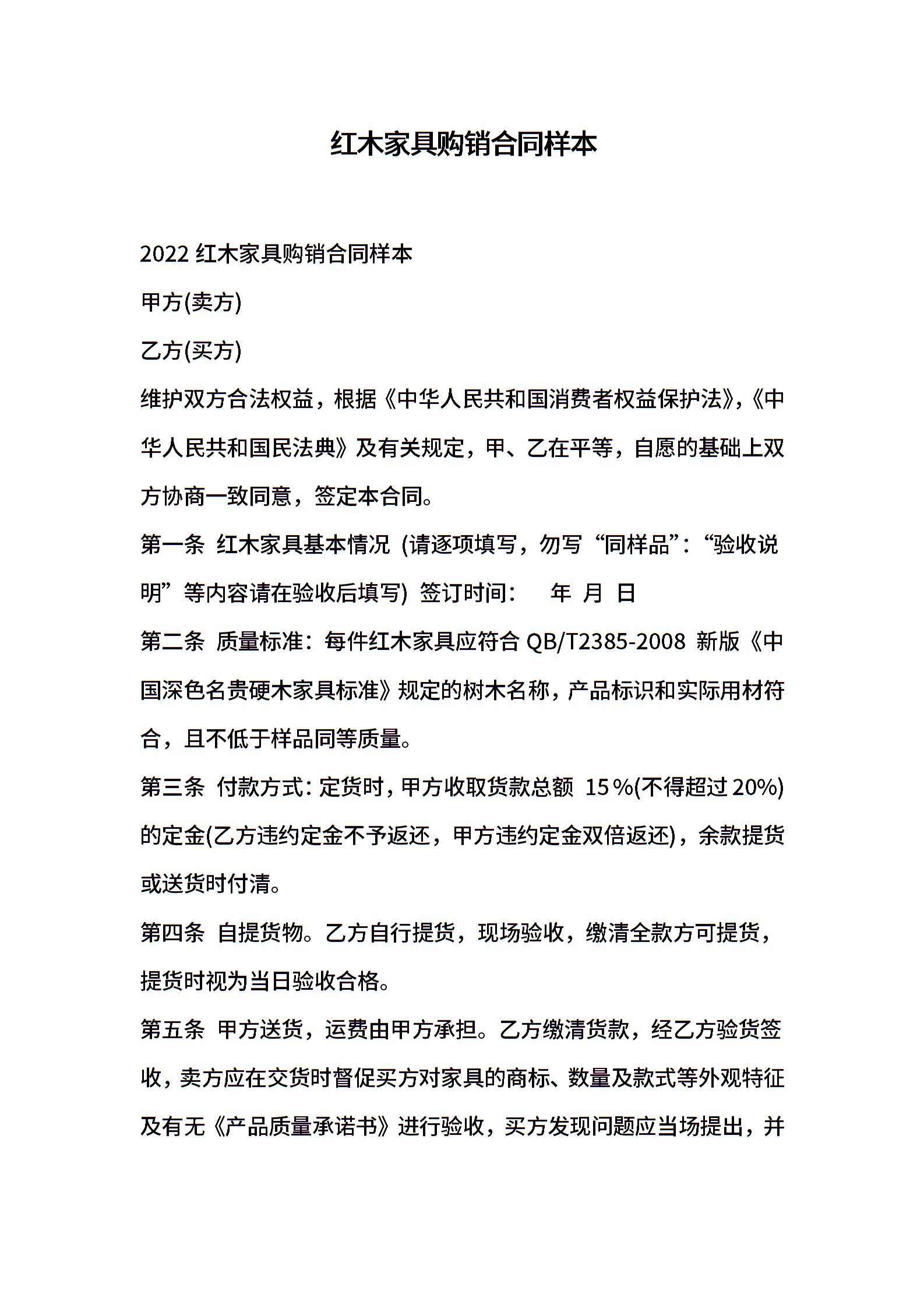 红木家具购销合同样本