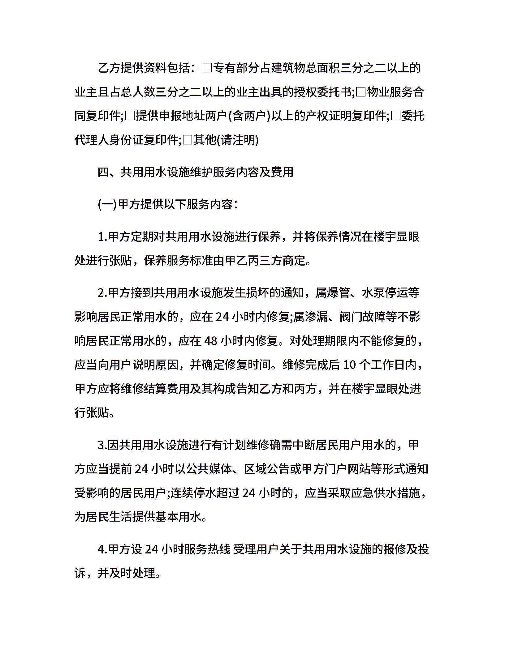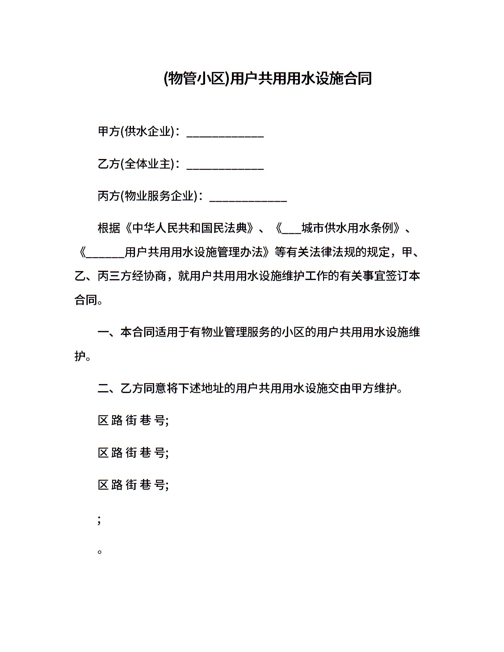 (物管小区)用户共用用水设施合同